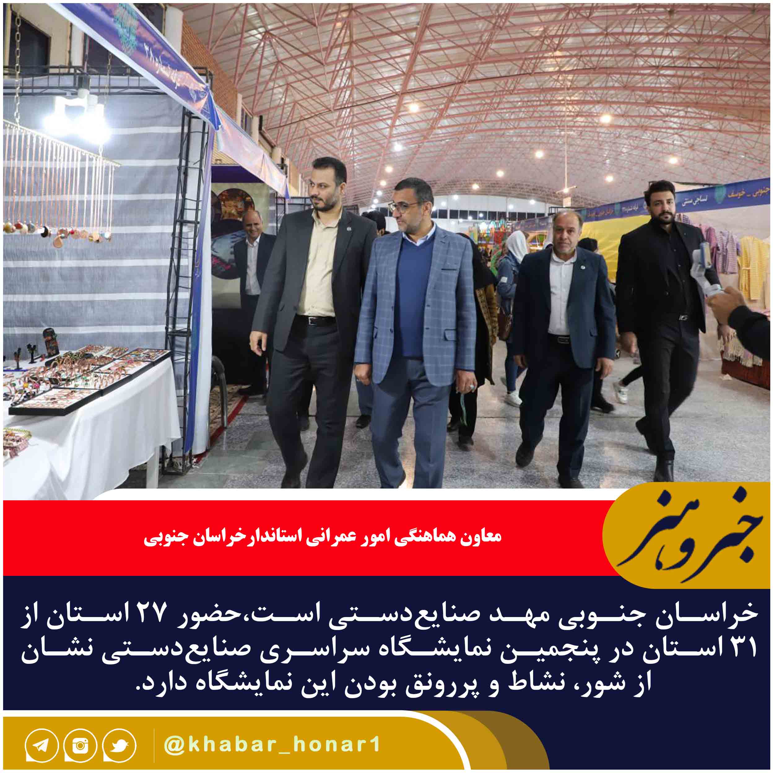 معاون هماهنگی امور عمرانی استاندارخراسان جنوبی در بازدید از پنجمین نمایشگاه سراسری صنایعدستی خراسان جنوبی، این استان را مهد صنایعدستی دانست.