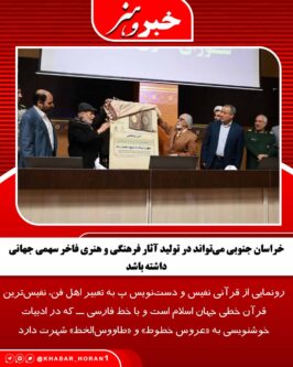 قرآنی که با خط فاخر عثمان طاها در خراسان جنوبی کتابت شده، نه تنها یک اثر مذهبی، بلکه میراثی ماندگار از این دیار است که نشان میدهد این استان میتواند در تولید آثار فرهنگی و هنری فاخر سهمی جهانی داشته باشد؛ میراثی که نسلهای آینده با افتخار از آن یاد خواهند کرد.