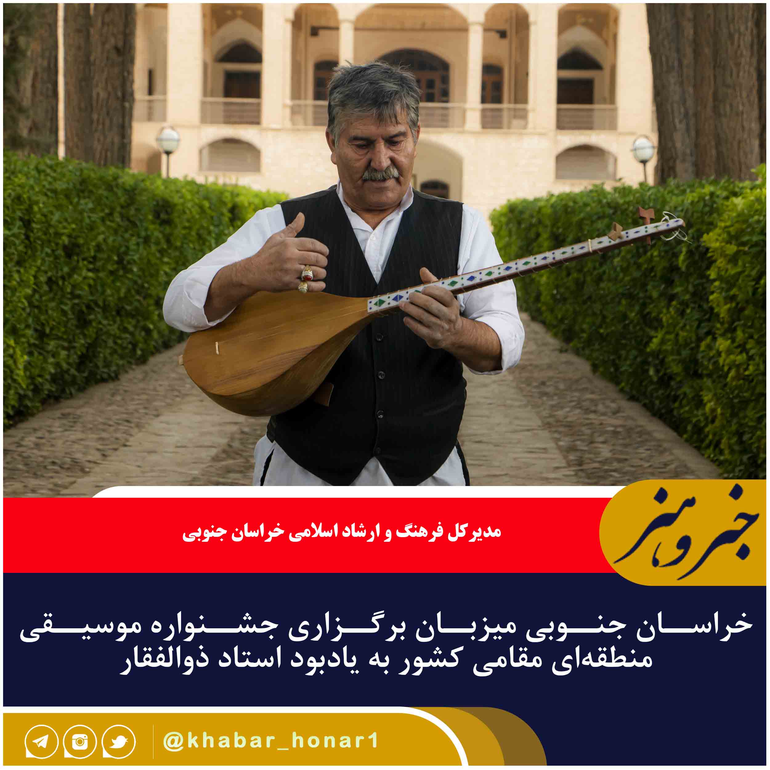 مدیرکل فرهنگ و ارشاد اسلامی خراسان جنوبی از برگزاری جشنواره موسیقی منطقهای مقامی کشور به میزبانی خراسان جنوبی به یادبود استاد ذوالفقار بیتانه توسط وزارت فرهنگ و ارشاد اسلامی خبر داد.