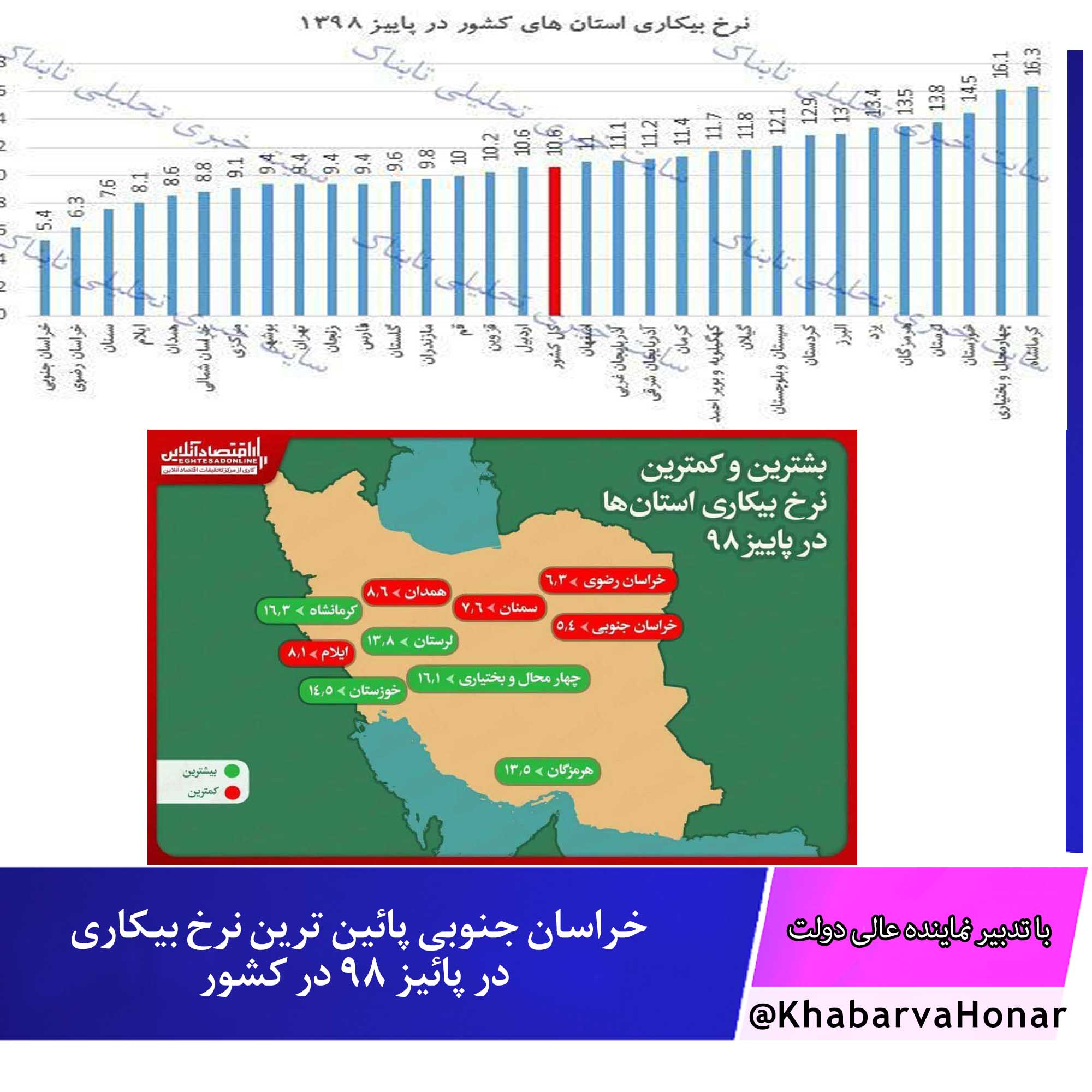 با تدبیر نماینده عالی دولت و دولت مردان تدبیر و امید در استان ؛ خراسان جنوبی پائین ترین نرخ بیکاری در پائیز ۹۸ در کشور