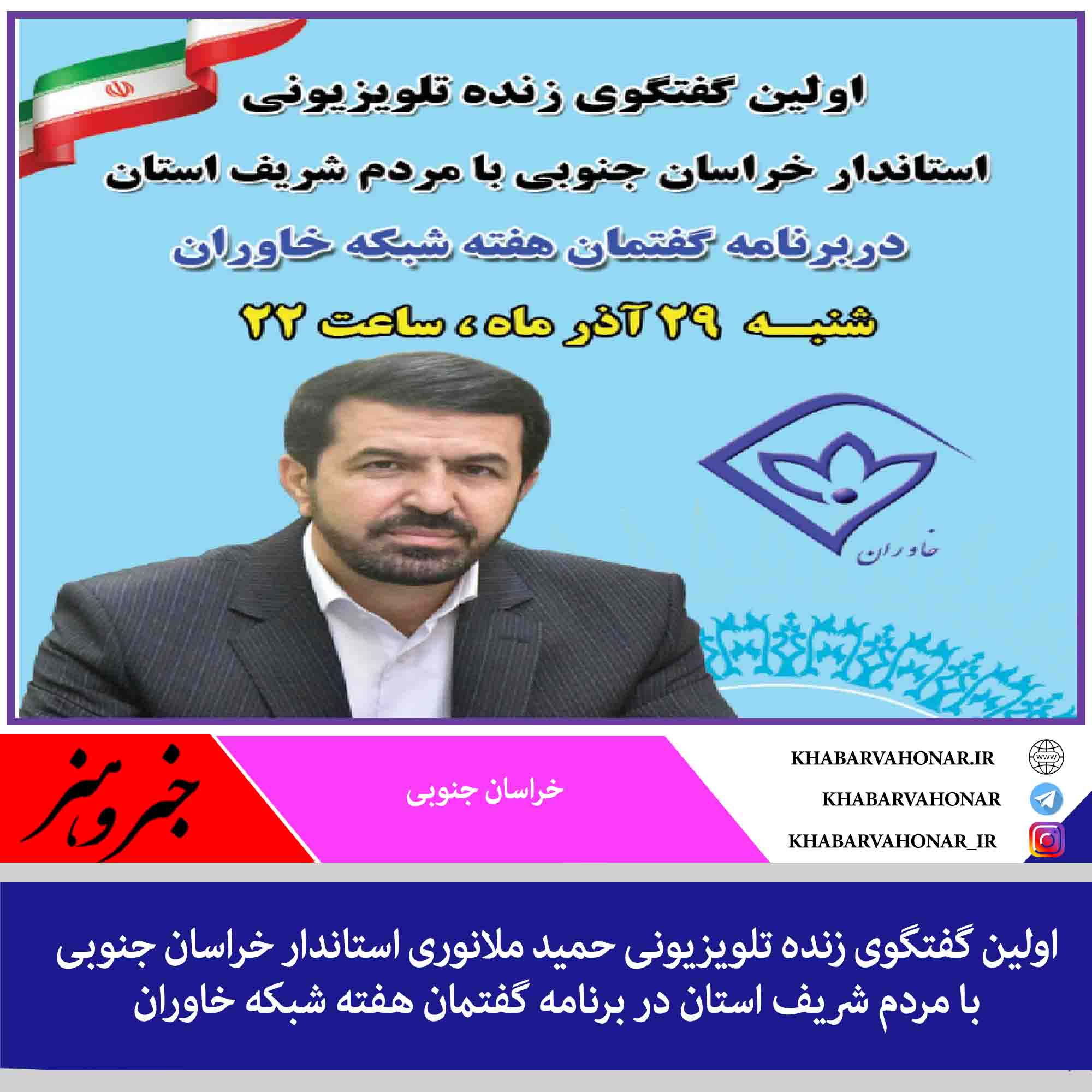 اولین گفتگوی زنده تلویزیونی حمید ملانوری استاندار خراسان جنوبی با مردم شریف استان در برنامه گفتمان هفته شبکه خاوران
