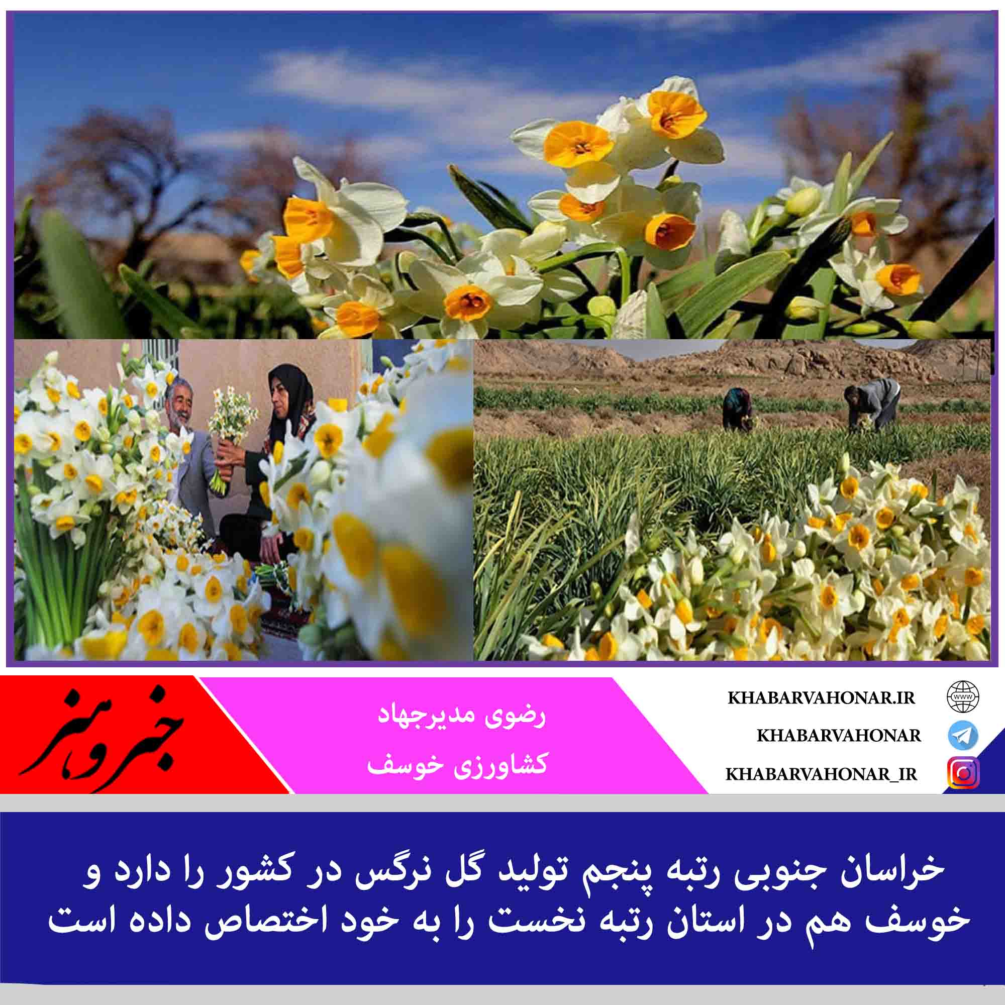 خراسان جنوبی رتبه پنجم تولید گل نرگس در کشور را دارد و خوسف هم در استان رتبه نخست را به خود اختصاص داده است.