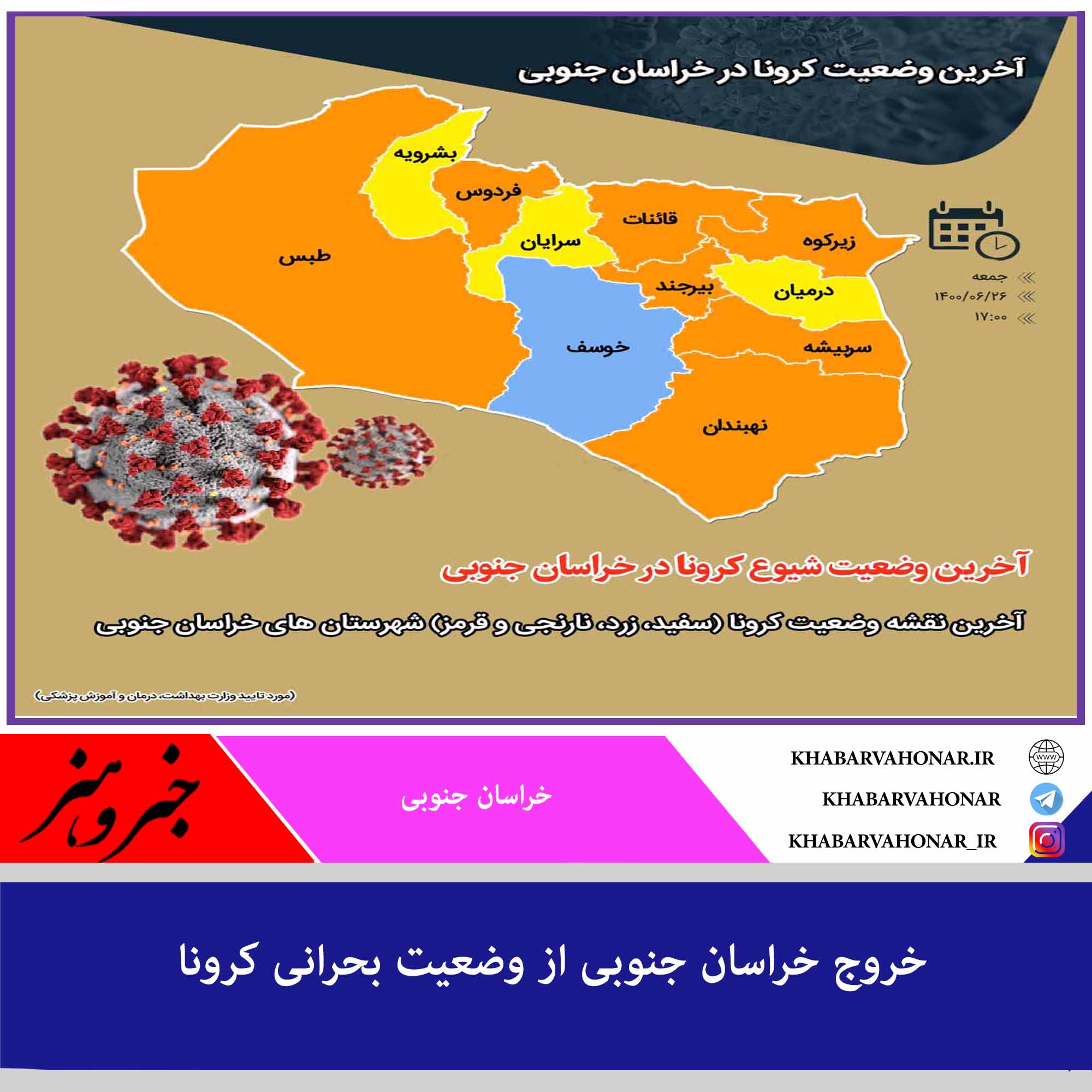 ?آخرین نقشه وضعیت کرونا (سفید، زرد، نارنجی و قرمز) شهرستان های خراسان جنوبی (مورد تایید وزارت بهداشت، درمان و آموزش پزشکی) (بروز رسانی از ۲۷ شهریور ماه ۱۴۰۰)