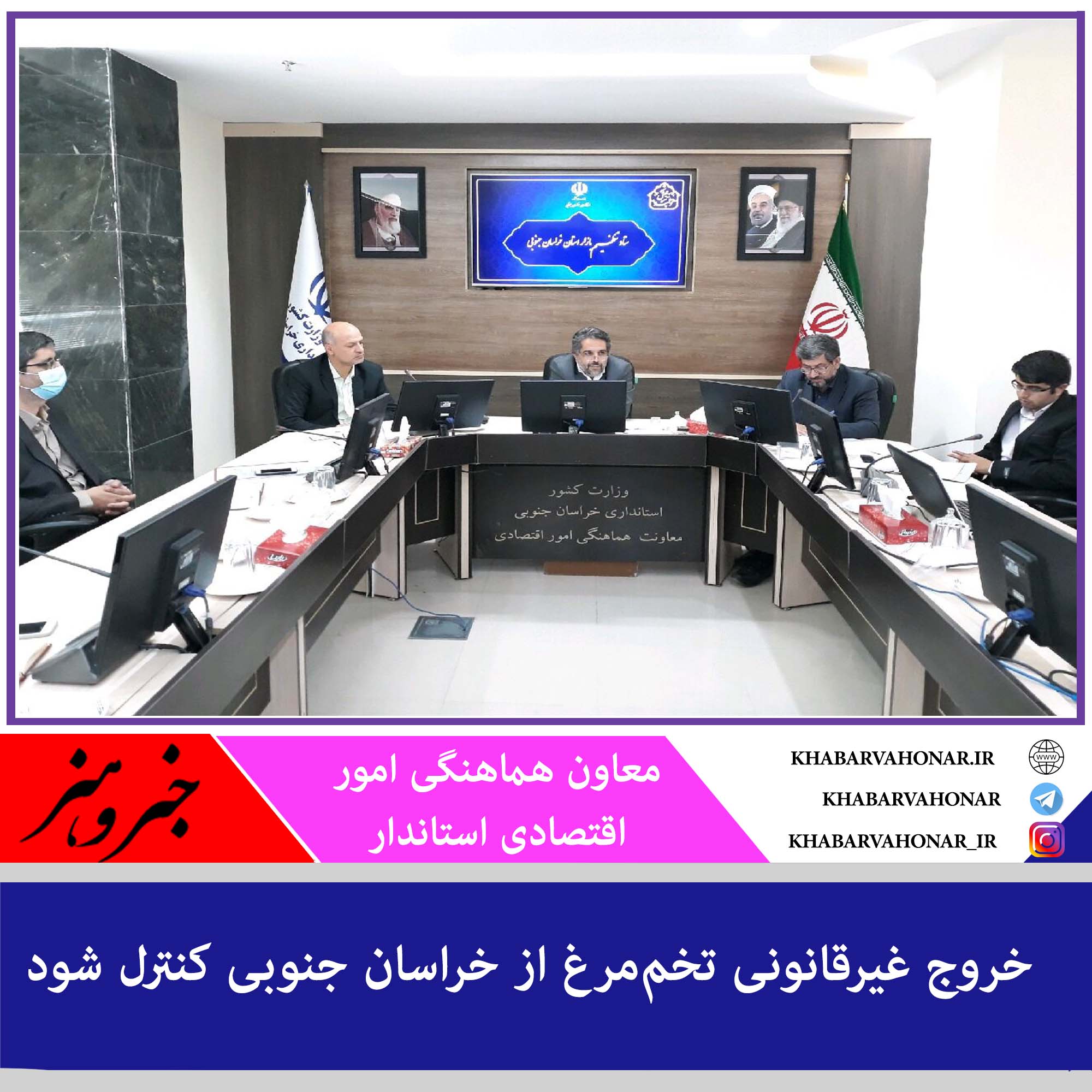 معاون هماهنگی امور اقتصادی استاندار خراسان جنوبی گفت: دستگاه‌های نظارتی و انتظامی باید برای ممانعت از خروج غیرقانونی تخم‌مرغ از استان، مبادی تولید تا عرضه را تحت کنترل داشته باشند.