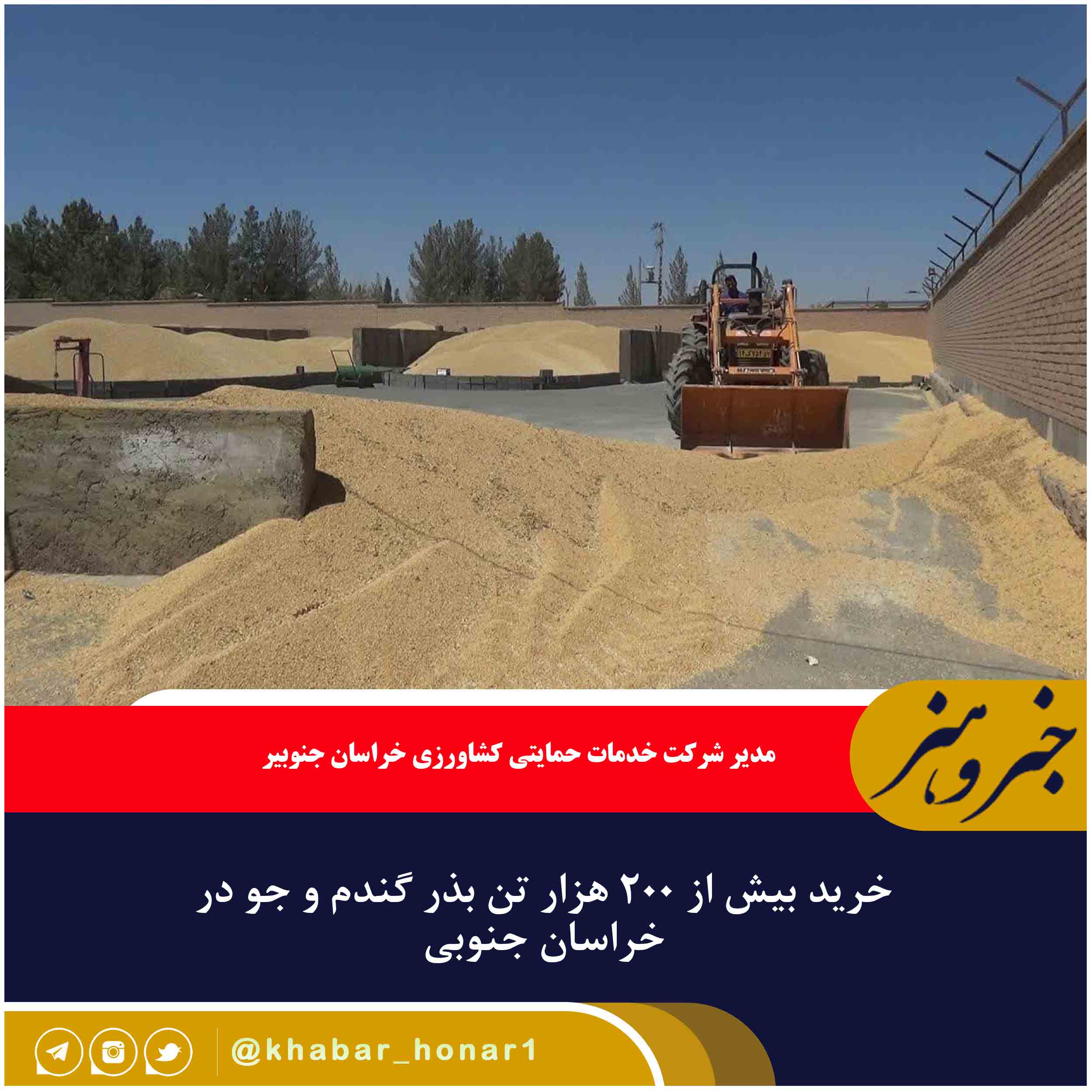 مدیر شرکت خدمات حمایتی کشاورزی خراسان جنوبی گفت: تاکنون بیش از ۲۰۰ هزار تن بذر گندم و جو در استان خریداری شده است.