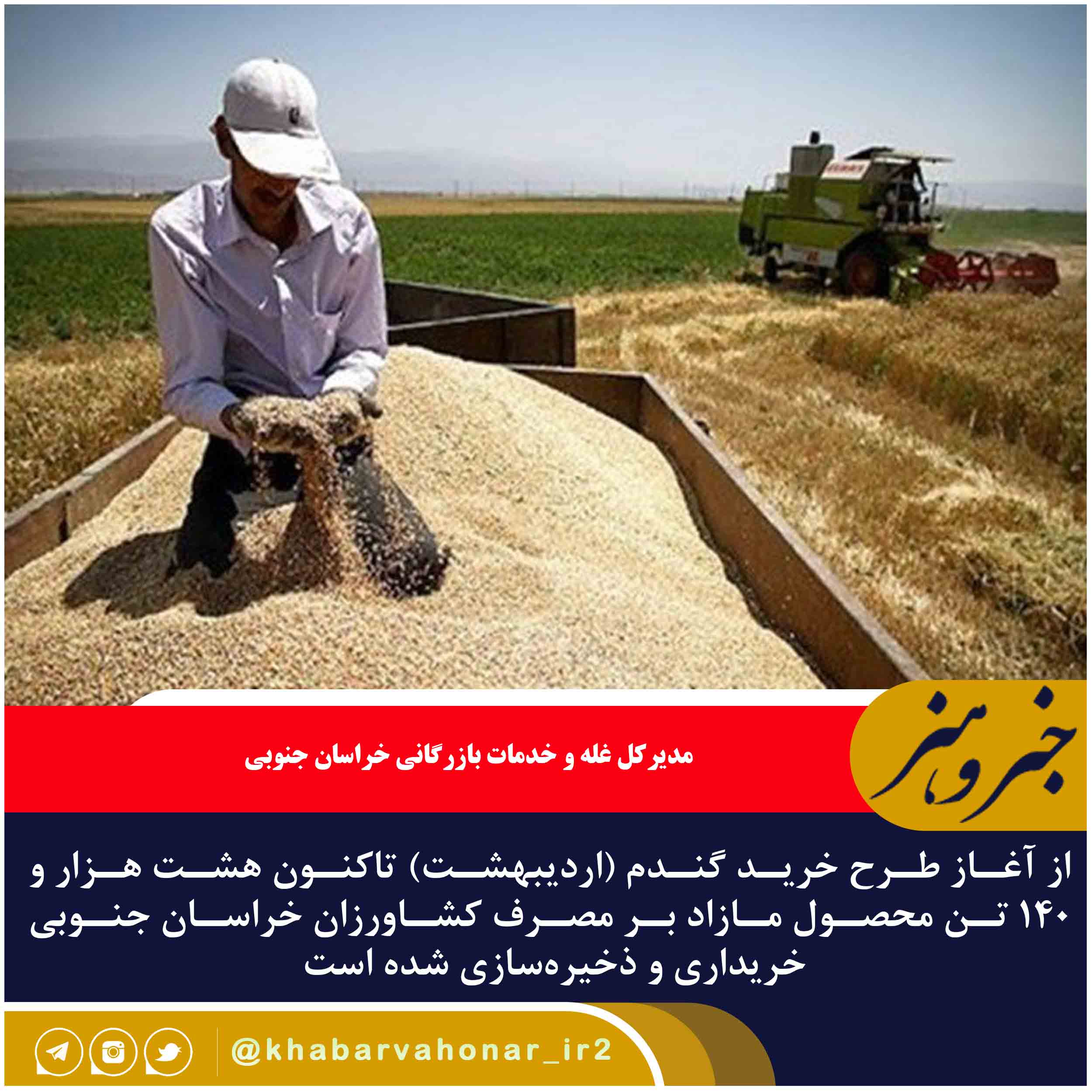 مدیرکل غله و خدمات بازرگانی خراسان جنوبی گفت: از آغاز طرح خرید گندم (اردیبهشت) تاکنون هشت هزار و ۱۴۰ تن محصول مازاد بر مصرف کشاورزان خراسان جنوبی خریداری و ذخیرهسازی شده است.