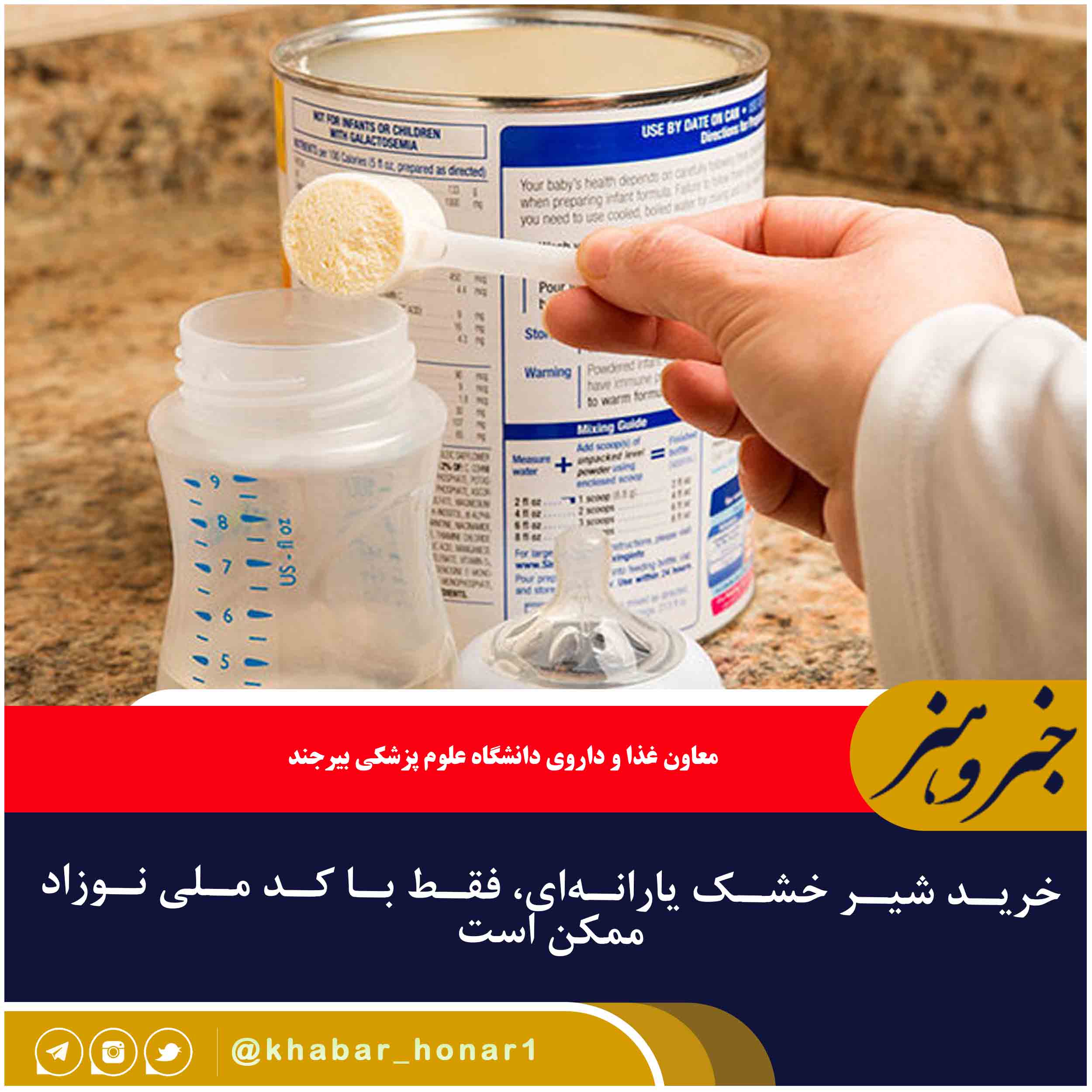 بنا بر اعلام معاون غذا و داروی دانشگاه علوم پزشکی بیرجند درباره مدیریت توزیع انواع شیرخشک از ۲۰ مهر ماه ۱۴۰۲ تحویل شیرخشک یارانهای در قبال ثبت کدملی و با ارائه شناسنامه نوزاد، توسط داروخانهها ارائه میشود.