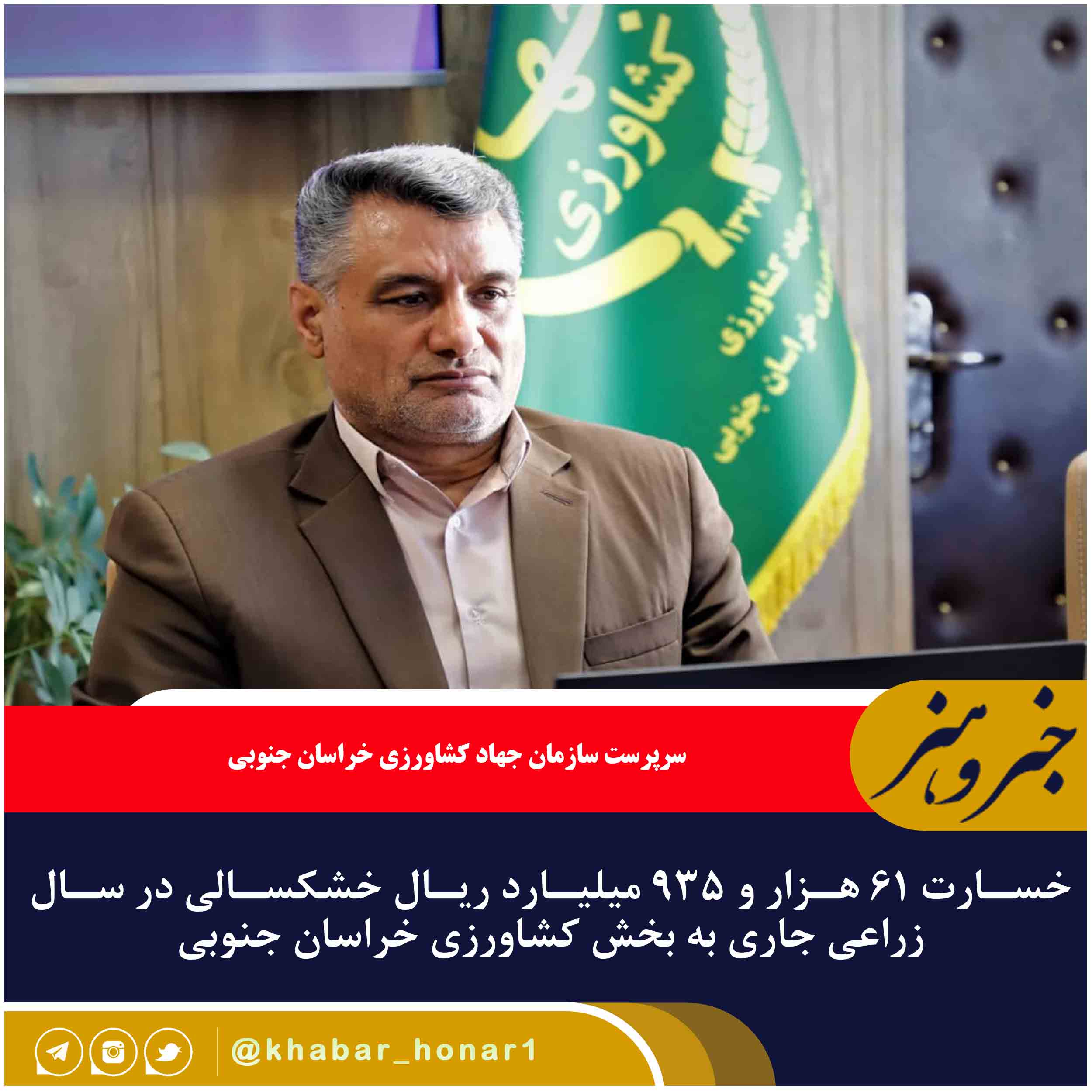 سرپرست سازمان جهاد کشاورزی خراسان جنوبی گفت: خسارت خشکسالی در سال زراعی جاری به زیربخشهای زراعی و باغی استان رقم بیش از ۶۱ هزار و ۹۳۵ میلیارد ریال برآورد شد.