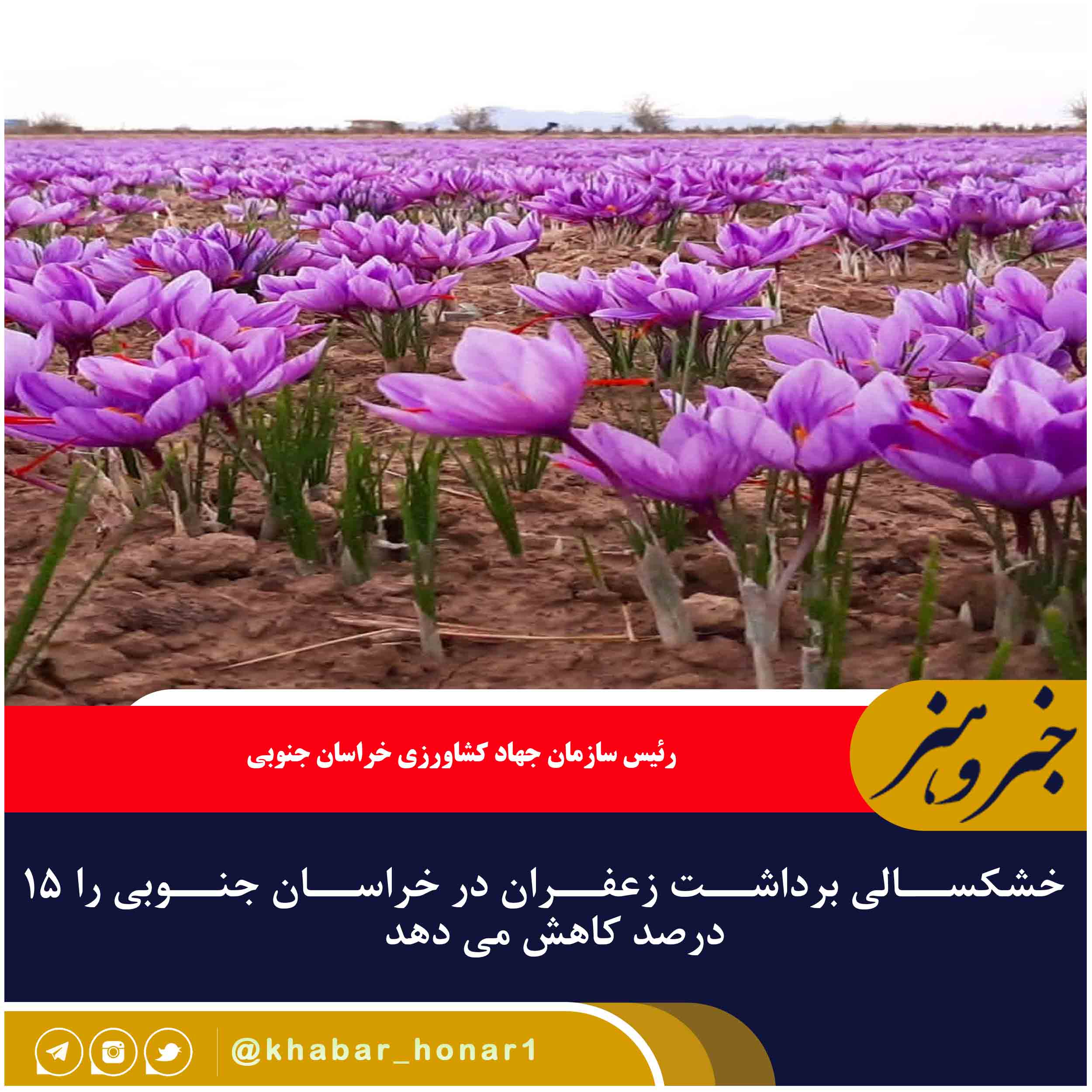 رئیس سازمان جهاد کشاورزی خراسان جنوبی گفت: به دلیل خشکسالی و تغییرات اقلیمی پیشبینی میشود که برداشت زعفران در سال جاری نسبت به سال قبل ۱۵ درصد کاهش داشته باشد.