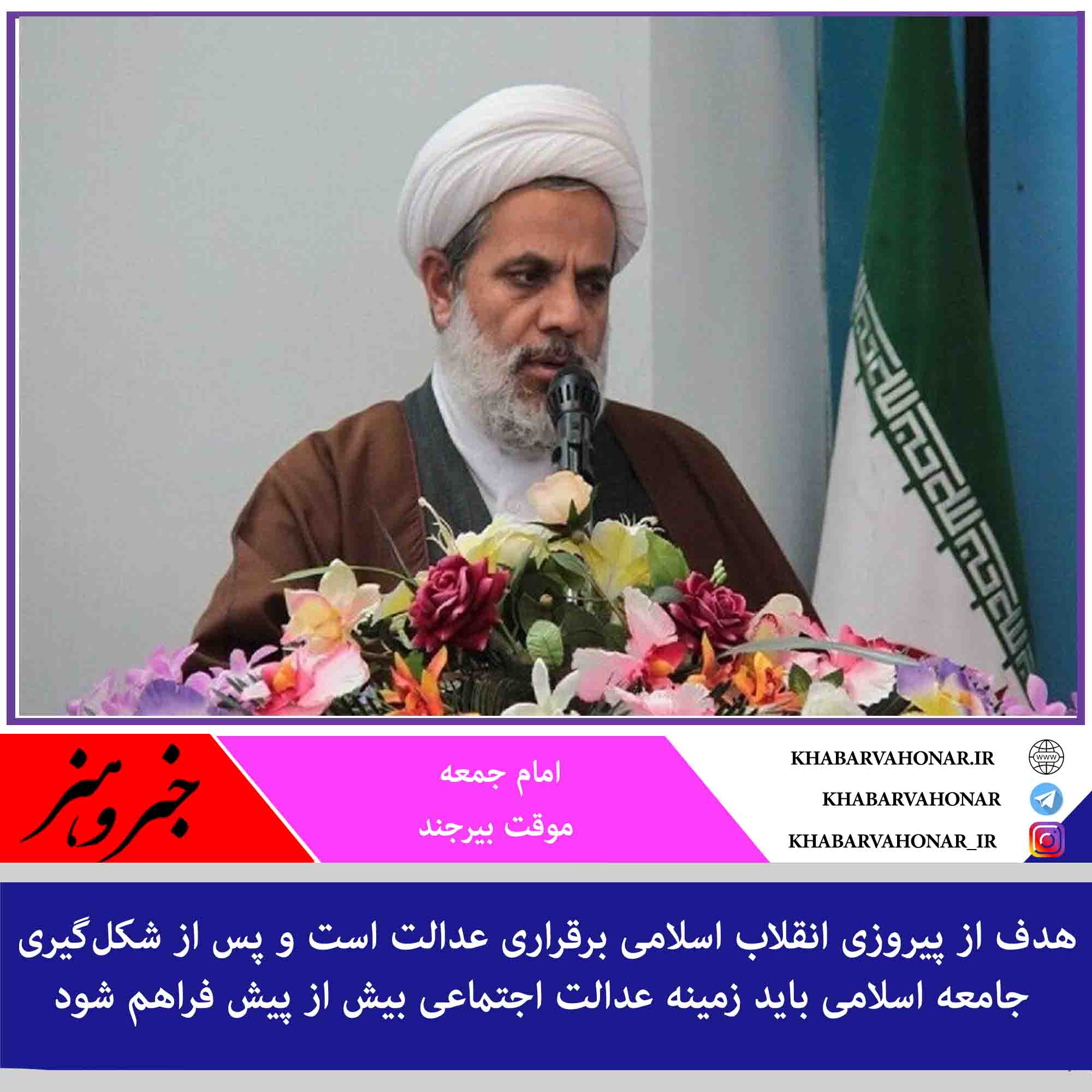 امام جمعه موقت بیرجند گفت: هدف از پیروزی انقلاب اسلامی برقراری عدالت است و پس از شکلگیری جامعه اسلامی باید زمینه عدالت اجتماعی بیش از پیش فراهم شود.