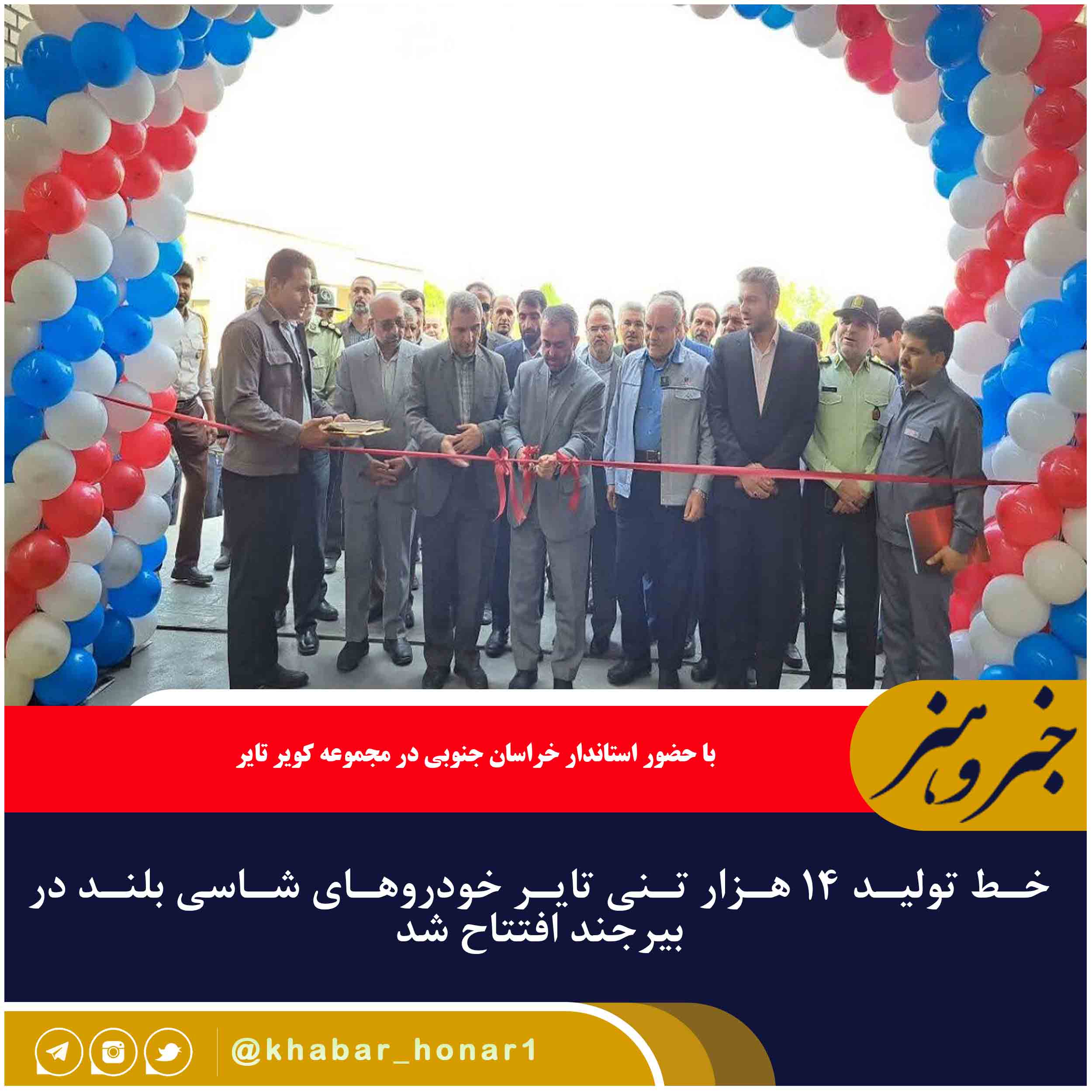 همزمان با چهارمین روز هفته دولت خط تولید ۱۴ هزار تنی تایر خودروهای شاسی بلند(SUV/CUV) با حضور استاندار خراسان جنوبی در مجموعه کویر تایر بیرجند به بهرهبرداری رسید.