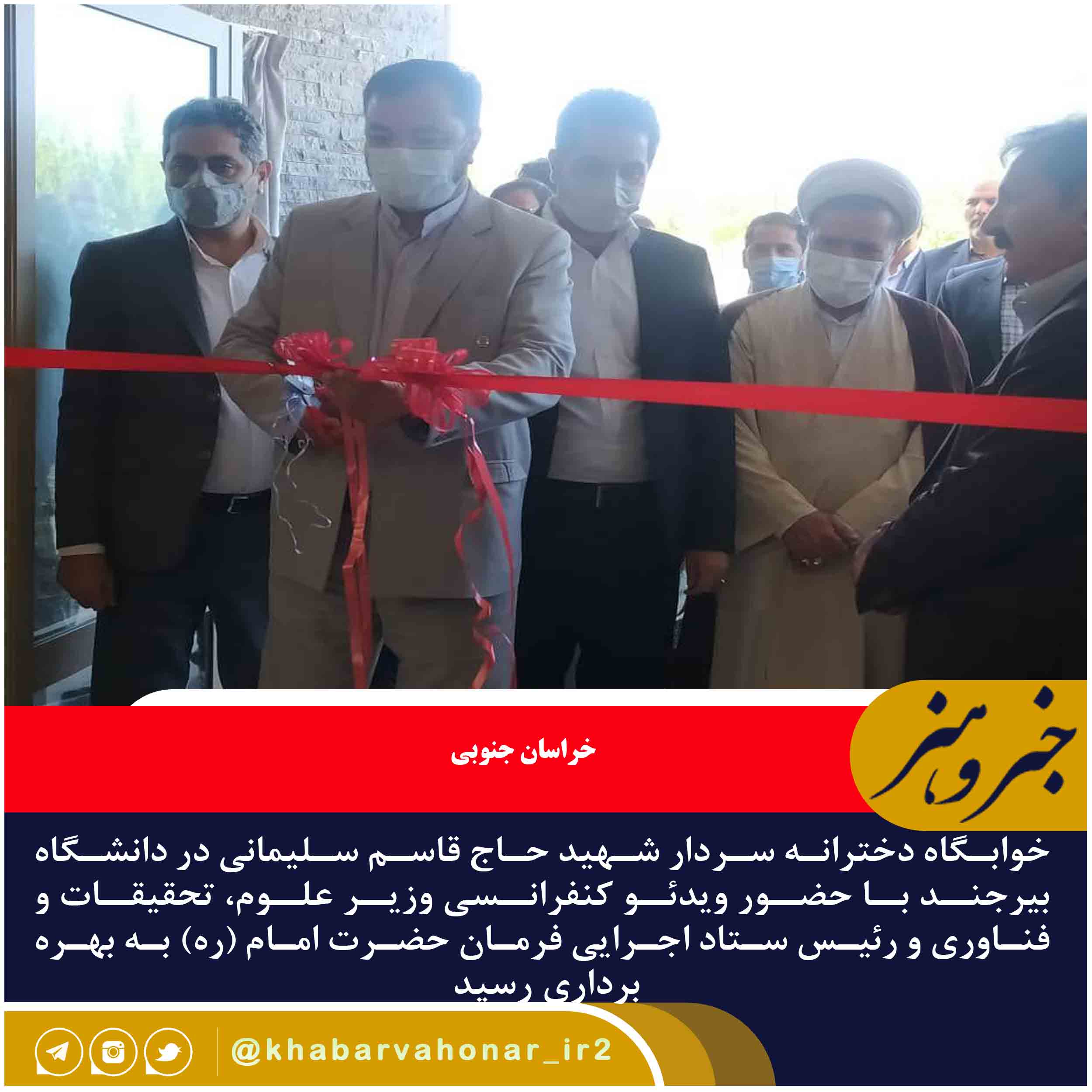 خوابگاه دخترانه سردار شهید حاج قاسم سلیمانی در دانشگاه بیرجند با حضور ویدئو کنفرانسی وزیر علوم، تحقیقات و فناوری و رئیس ستاد اجرایی فرمان حضرت امام (ره) به بهرهبرداری رسید.