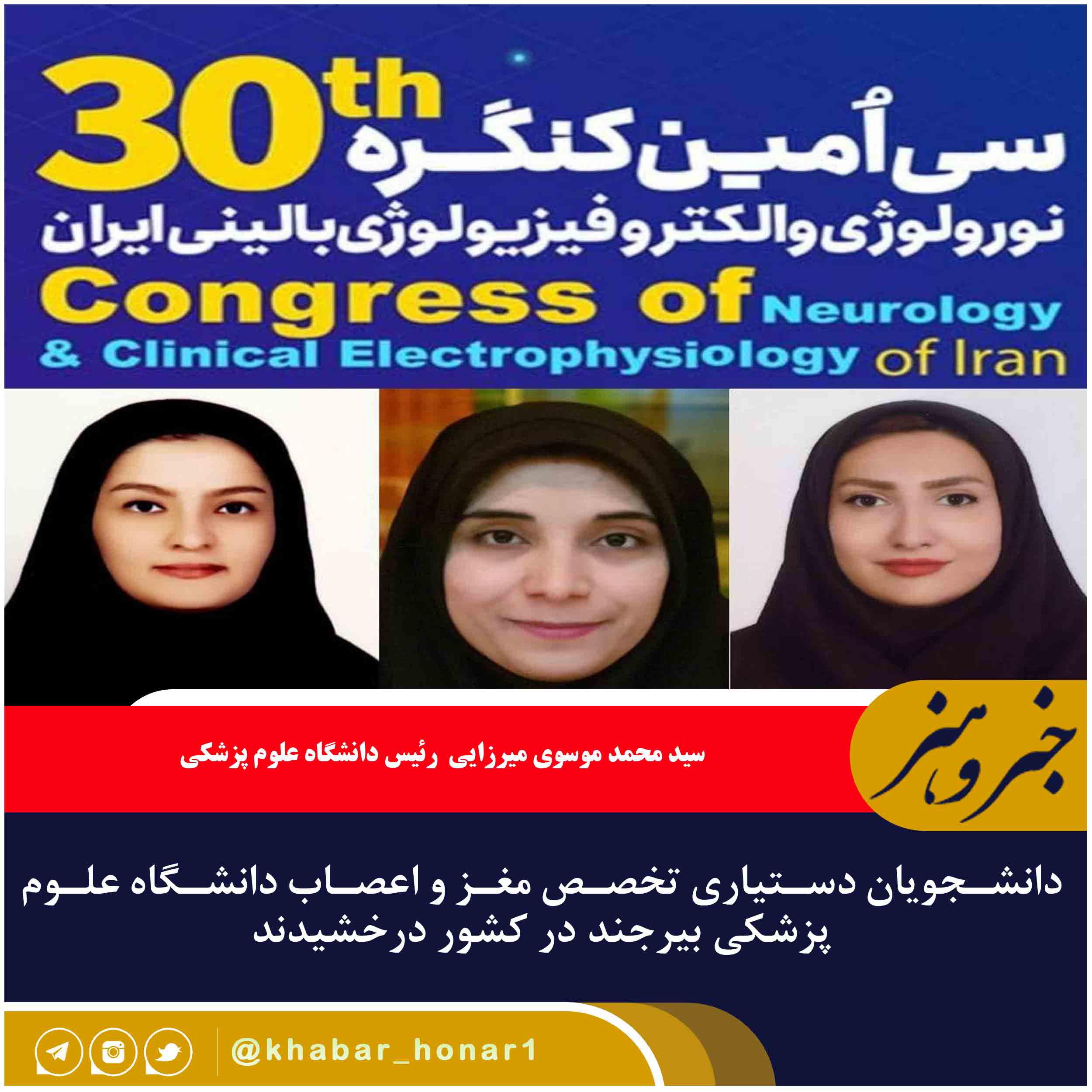 سه دانشجوی دستیار تخصص مغز و اعصاب با حضور در سی امین کنگره نورولوژی و الکتروفیزیولوژی بالینی ایران موفق به کسب رتبه سوم در رقابت با دستیاران سایر دانشگاه های علوم پزشکی کشور شدند.