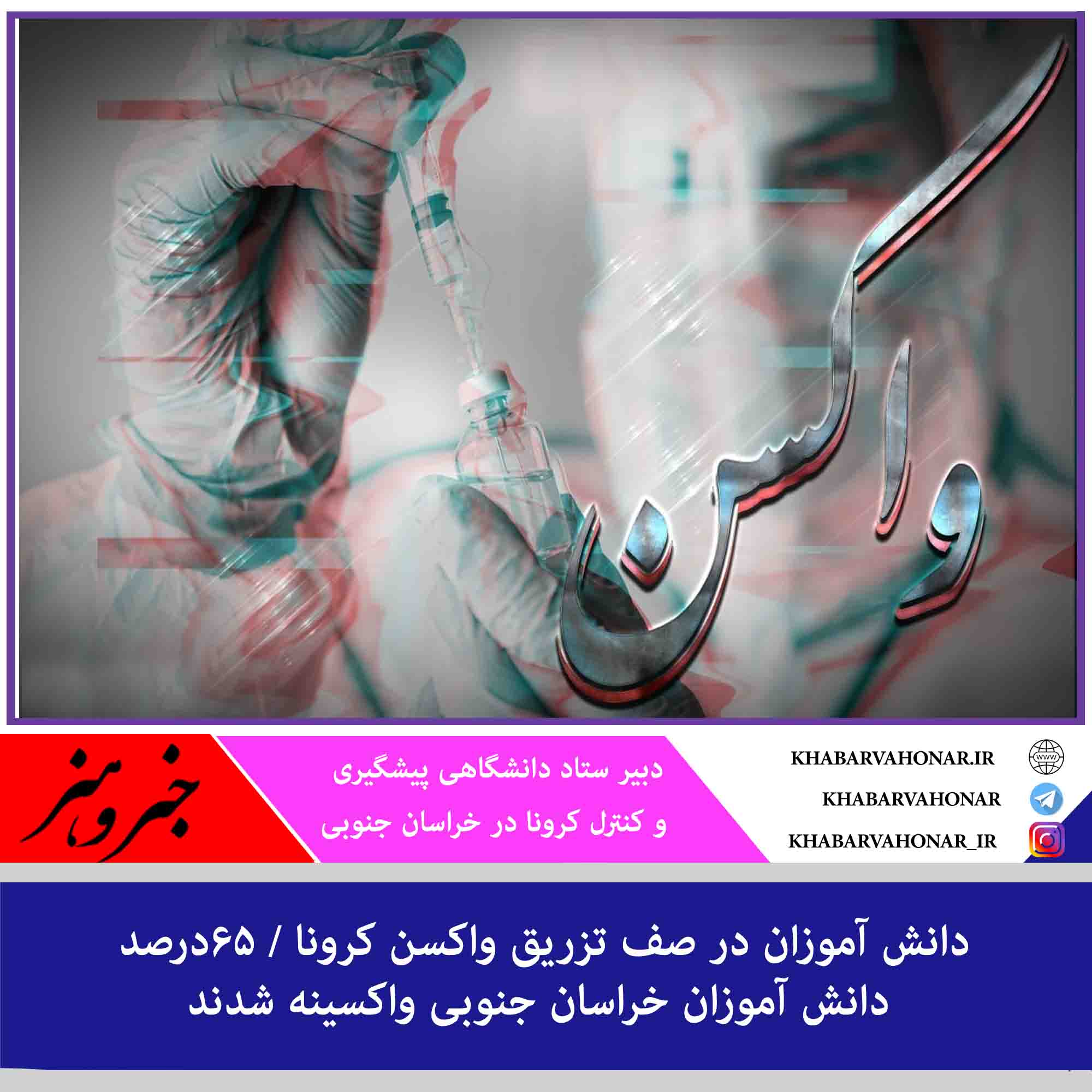 تاکنون ۶۴.۹۶ درصد دانش آموزان خراسان جنوبی در مقابل کرونا واکسینه شده اند.