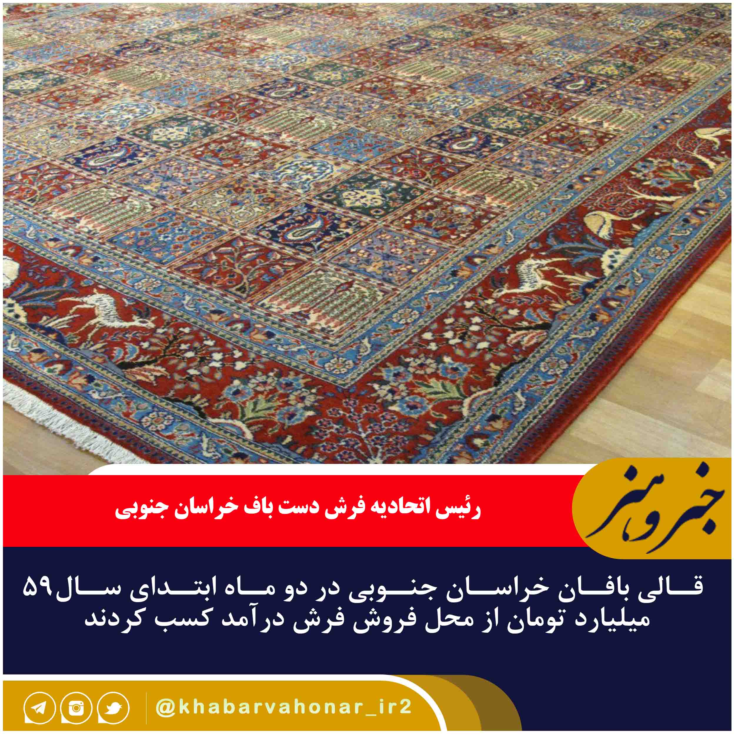 ?قالی بافان خراسان جنوبی در دو ماه ابتدای سال۵۹ میلیارد تومان از محل فروش فرش درآمد کسب کردند