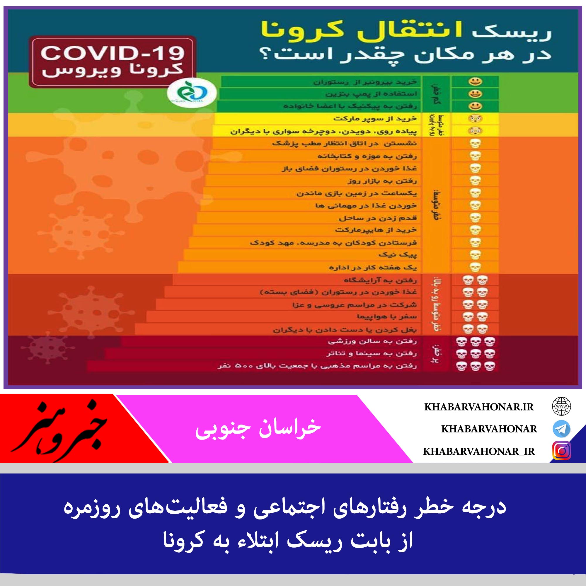 درجه خطر رفتارهای اجتماعی و فعالیت‌های روزمره از بابت ریسک ابتلاء به کرونا
