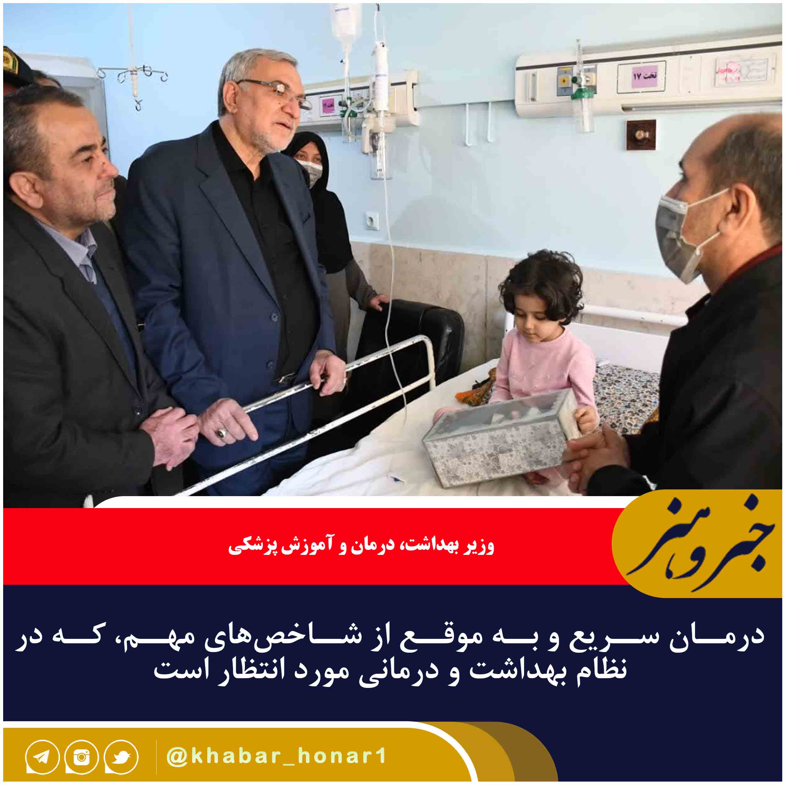 وزیر بهداشت، درمان و آموزش پزشکی صبح امروز (جمعه) در نهمین روز دهه فجر وارد بیرجند شد و ابتدا از بخش های مختلف بیمارستان امام رضا (ع) و بیمارستان ولی عصر (عج) مرکز استان بازدید کرد.