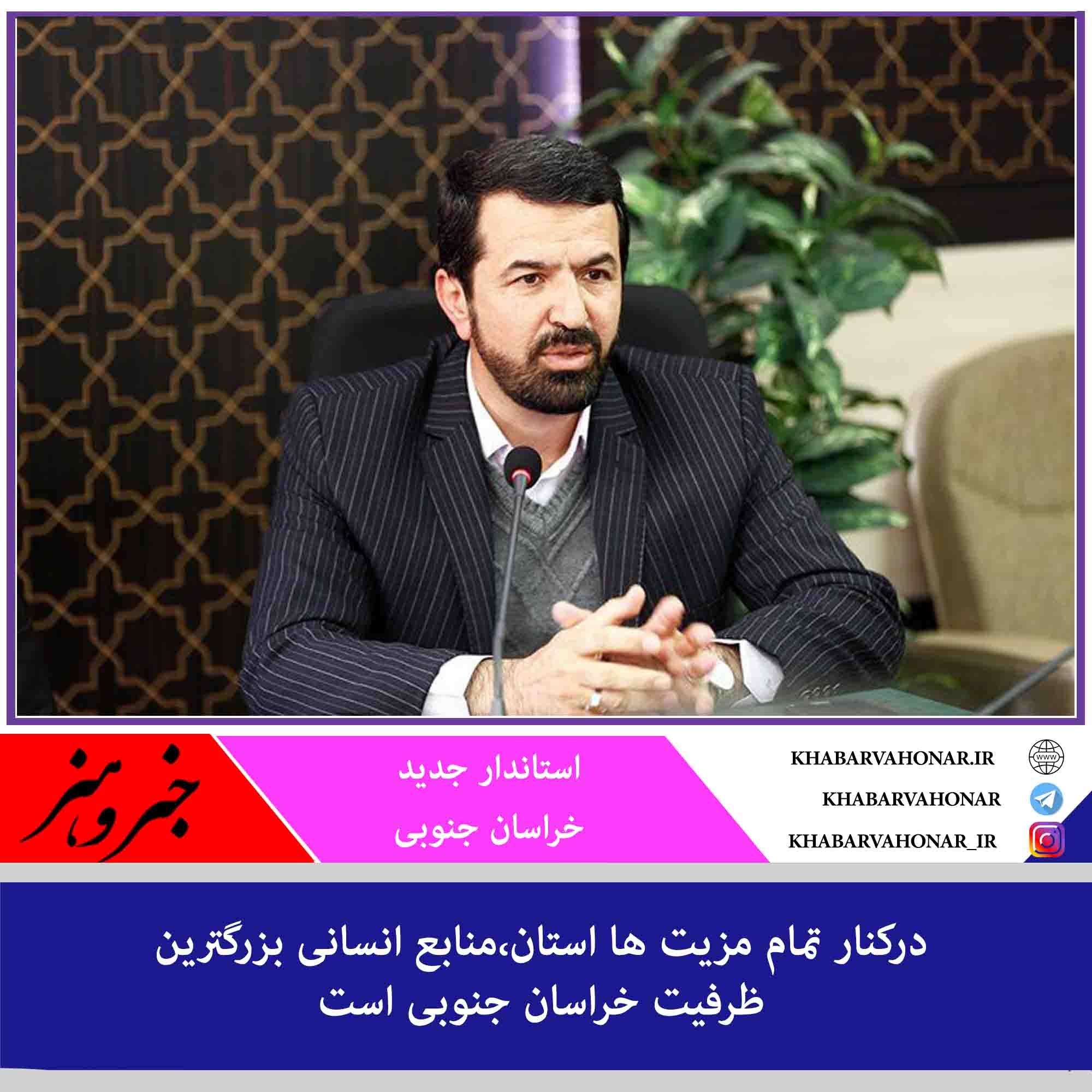 استاندار جدید خراسان جنوبی گفت: بزرگترین منبع غنی و مورد استفاده این استان که به عنوان یکی از بهترین منابع توسعه در دنیا امروز از آن یاد میشود، شخصیتهای برجسته علمی و فرهنگی و منابع انسانی بزرگ این استان است.