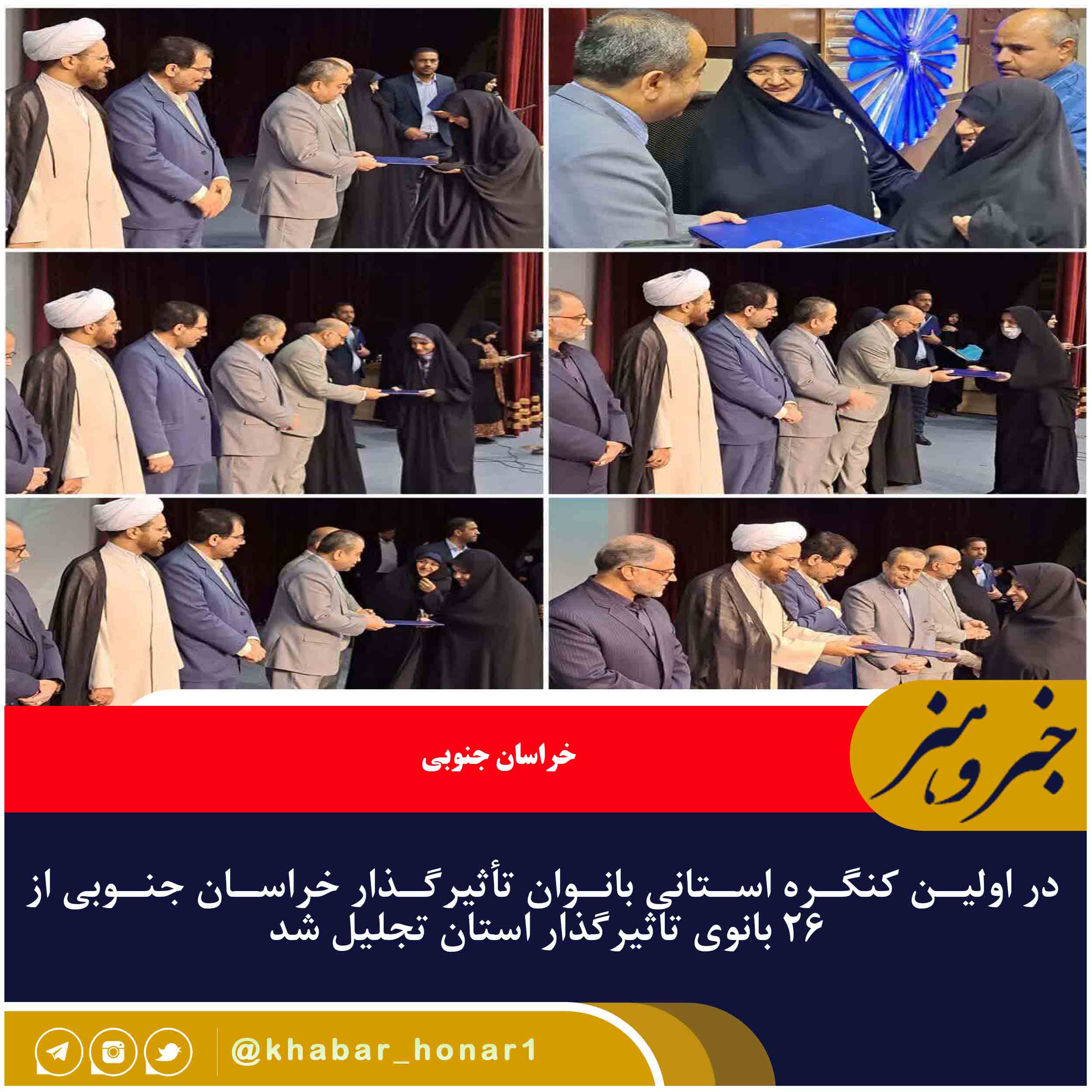 در مراسمی امروز از ۲۶ بانوی تاثیرگذار خراسان جنوبی در زمینههای فعالیتهای فرهنگی، علمی، جهادی و کشاورزی قدردانی شد.
