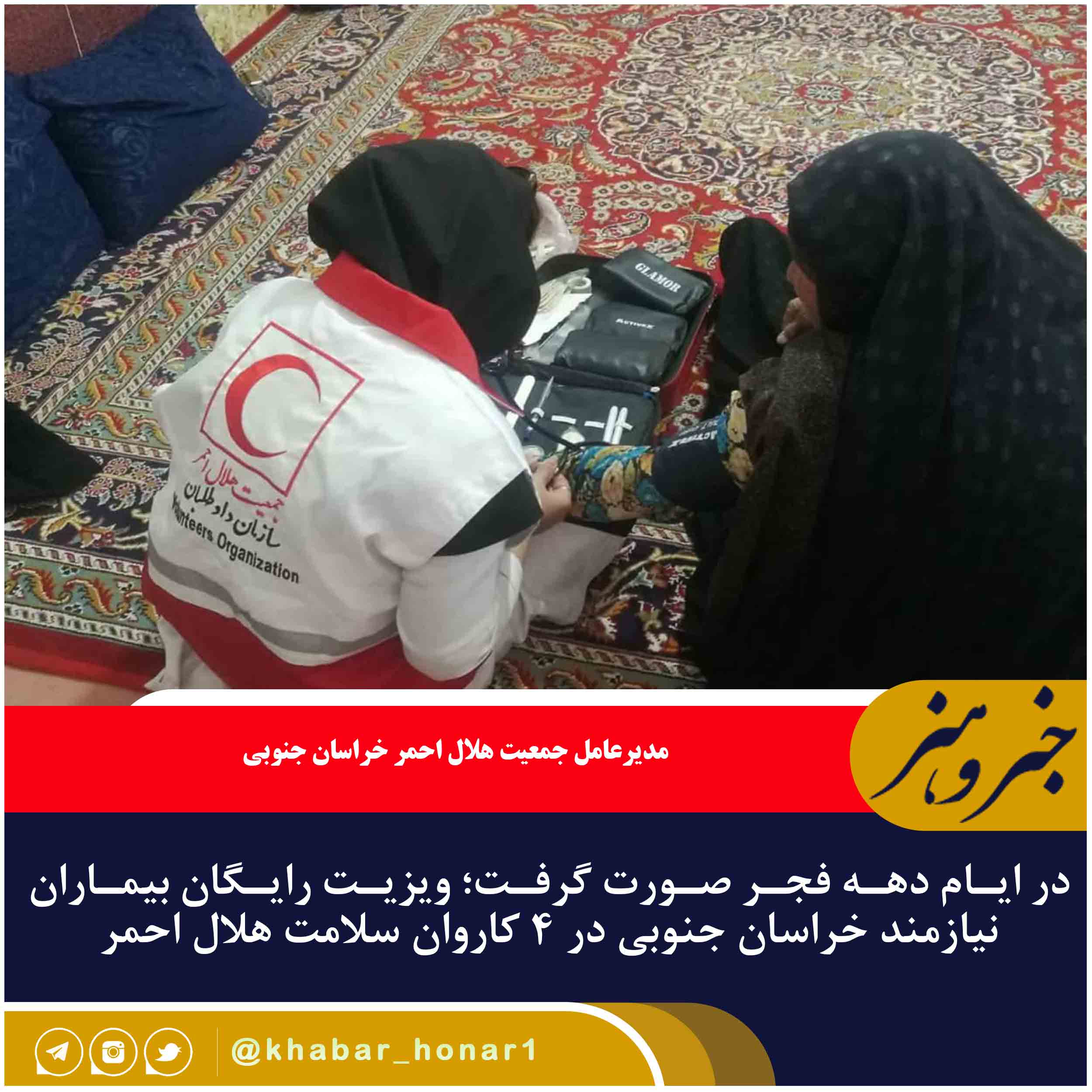 مدیرعامل جمعیت هلال احمر خراسان جنوبی گفت: در ایام دهه فجر امسال، چهار کاروان سلامت هلال احمر استان به روستاهای محروم اعزام شدند.
