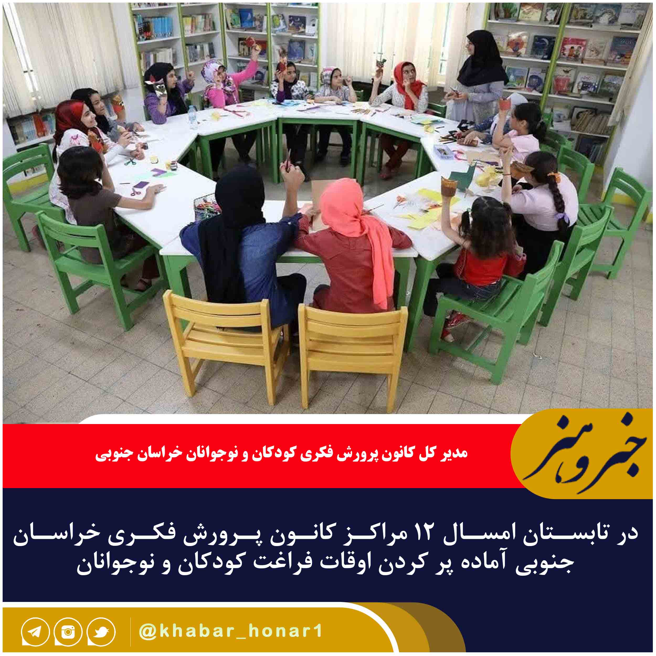 ۱۲ مرکز فرهنگی و هنری میزبان کودکان ونوجوانان استان برای ثبت نام و برگزاری کارگاههای مختلف فرهنگی، هنری و ادبی در ایام اوقات فراغت تابستان است .