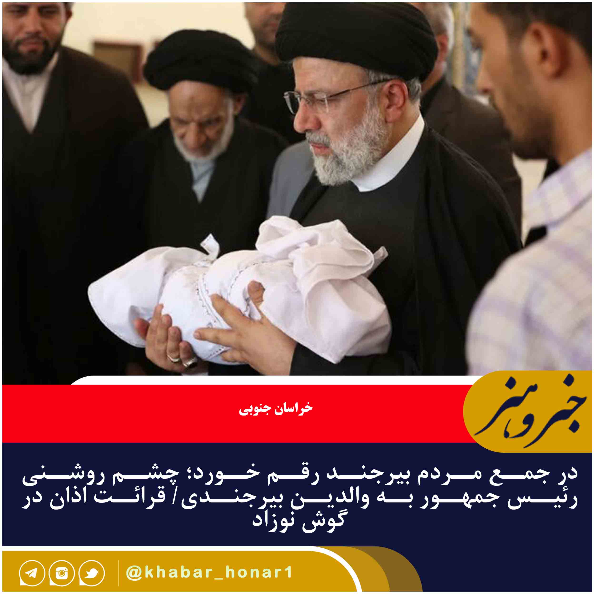 رئیس جمهور با حضور در جمع مردم در مزار باقریه بیرجند در گوش نوزاد بیرجندی اذان را قرائت کرد.