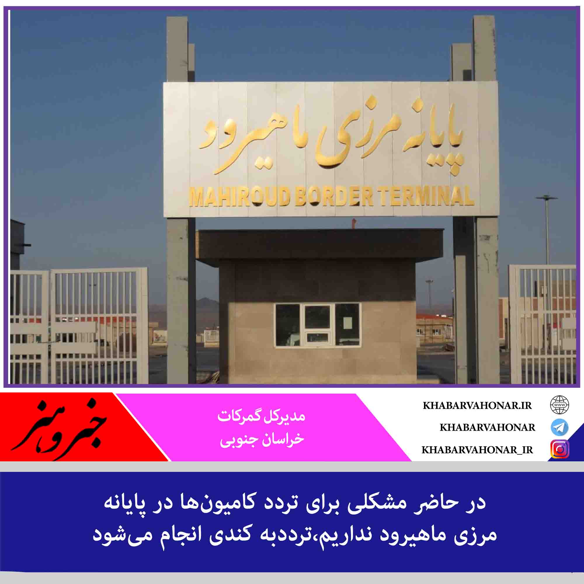 مدیرکل گمرکات خراسان جنوبی گفت: در حاضر مشکلی برای تردد کامیونها در پایانه مرزی ماهیرود نداریم ولی به دلیل حادثه آتشسوزی و تعداد زیاد خودروهای متوقف در مرز مشترک با افغانستان، روند فعالیت به کندی انجام میشود.