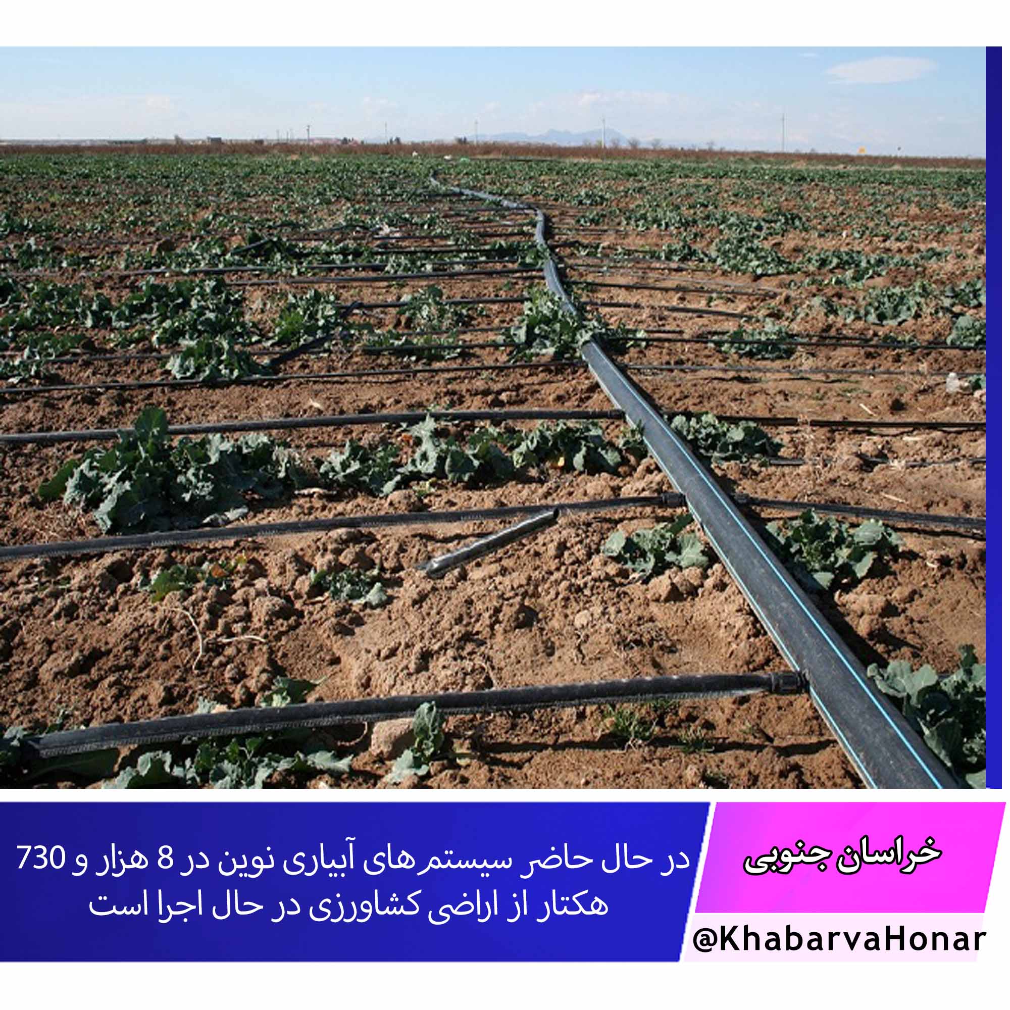 ۴۳۰ هکتار از اراضی کشاورزی خراسان جنوبی به سیستمهای آبیاری نوین در خراسان جنوبی اجرا شد.