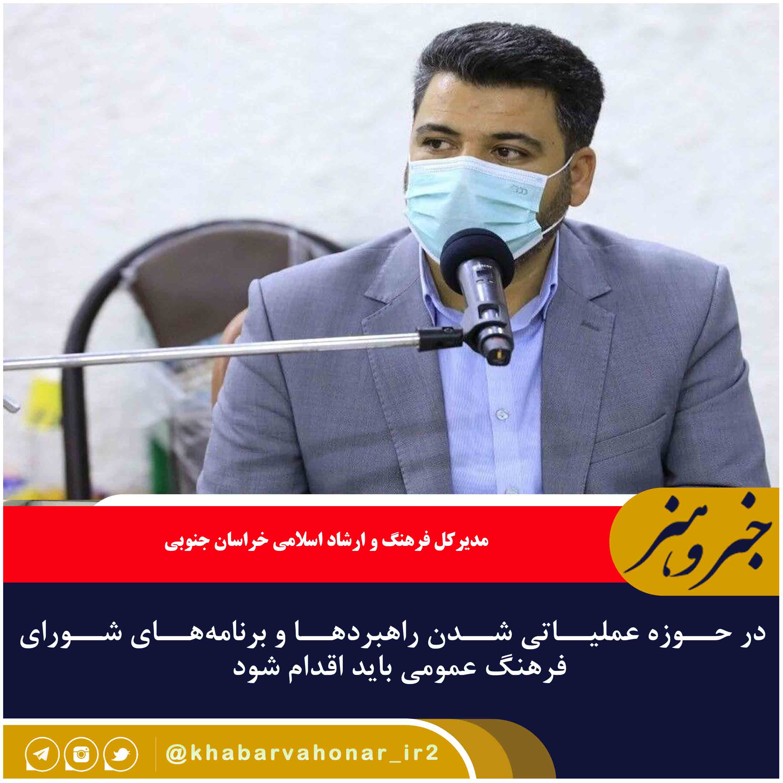 مدیرکل فرهنگ و ارشاد اسلامی خراسان جنوبی گفت: یکی از برنامههای محوری که مطالبه وزارت فرهنگ و ارشاد اسلامی، تاکید نماینده ولی فقیه در استان و استاندار همچنین از برنامههای کاری این مجموعه است، ضرورت فعال شدن شورای فرهنگ عمومی در سطح استان و شهرستانهاست.