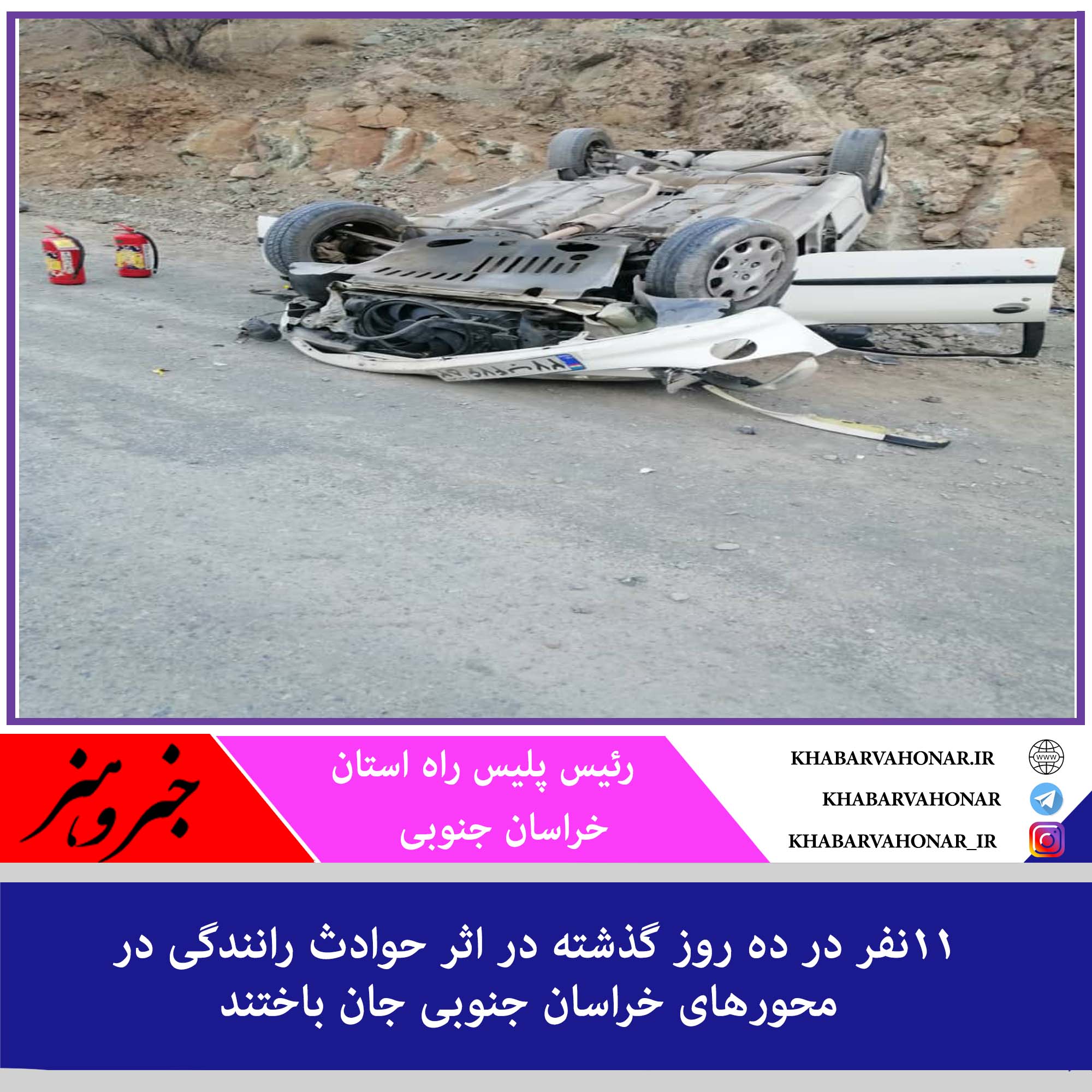۱۱نفر در ده روز گذشته در اثر حوادث رانندگی در محورهای خراسان جنوبی جان باختند.