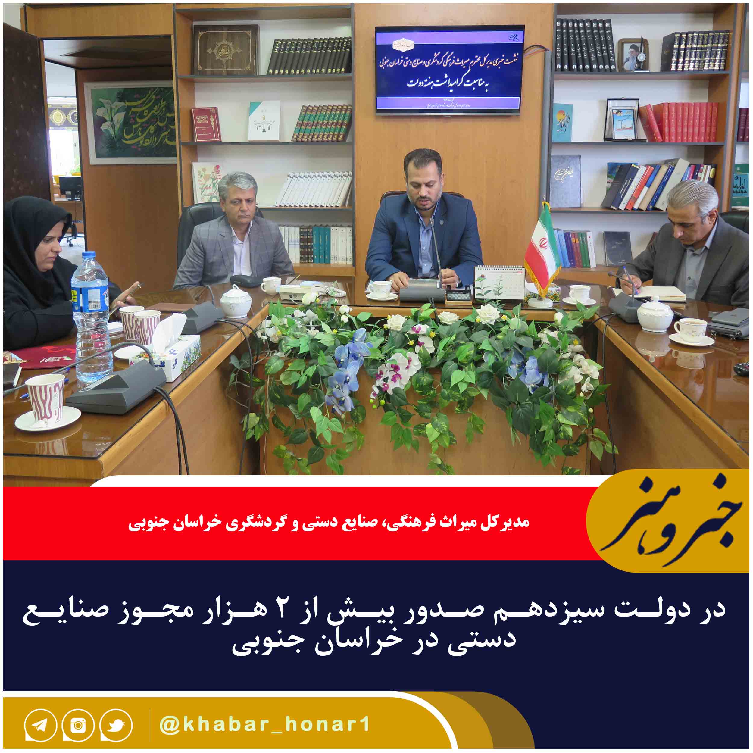 مدیرکل میراث فرهنگی، صنایع دستی و گردشگری خراسان جنوبی گفت: طی دو سال گذشته بیش از ۲ هزار مجوز در حوزه صنایع دستی استان صادر شده است.