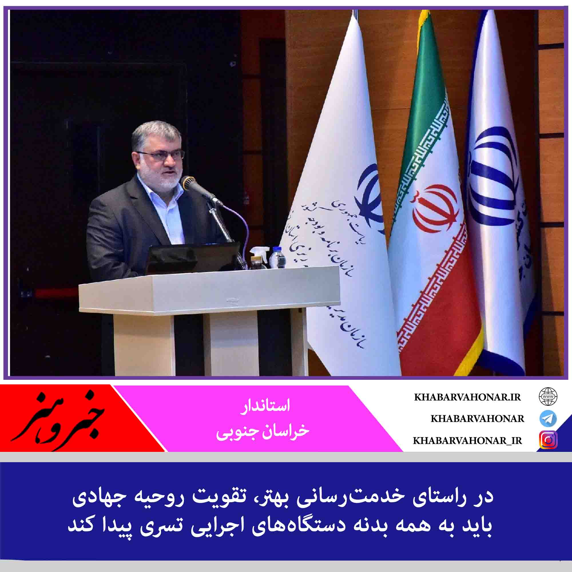 استاندار خراسان جنوبی گفت: در راستای خدمترسانی بهتر، تقویت روحیه جهادی باید به همه بدنه دستگاههای اجرایی تسری پیدا کند.