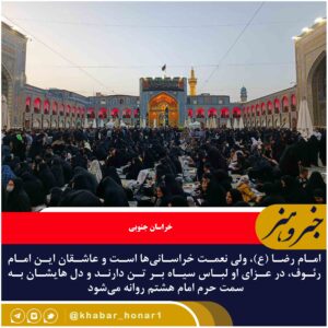 امام رضا (ع)، ولی نعمت خراسانیها است و عاشقان این امام رئوف، در عزای او لباس سیاه بر تن دارند و دل هایشان به سمت حرم امام هشتم روانه میشود.
