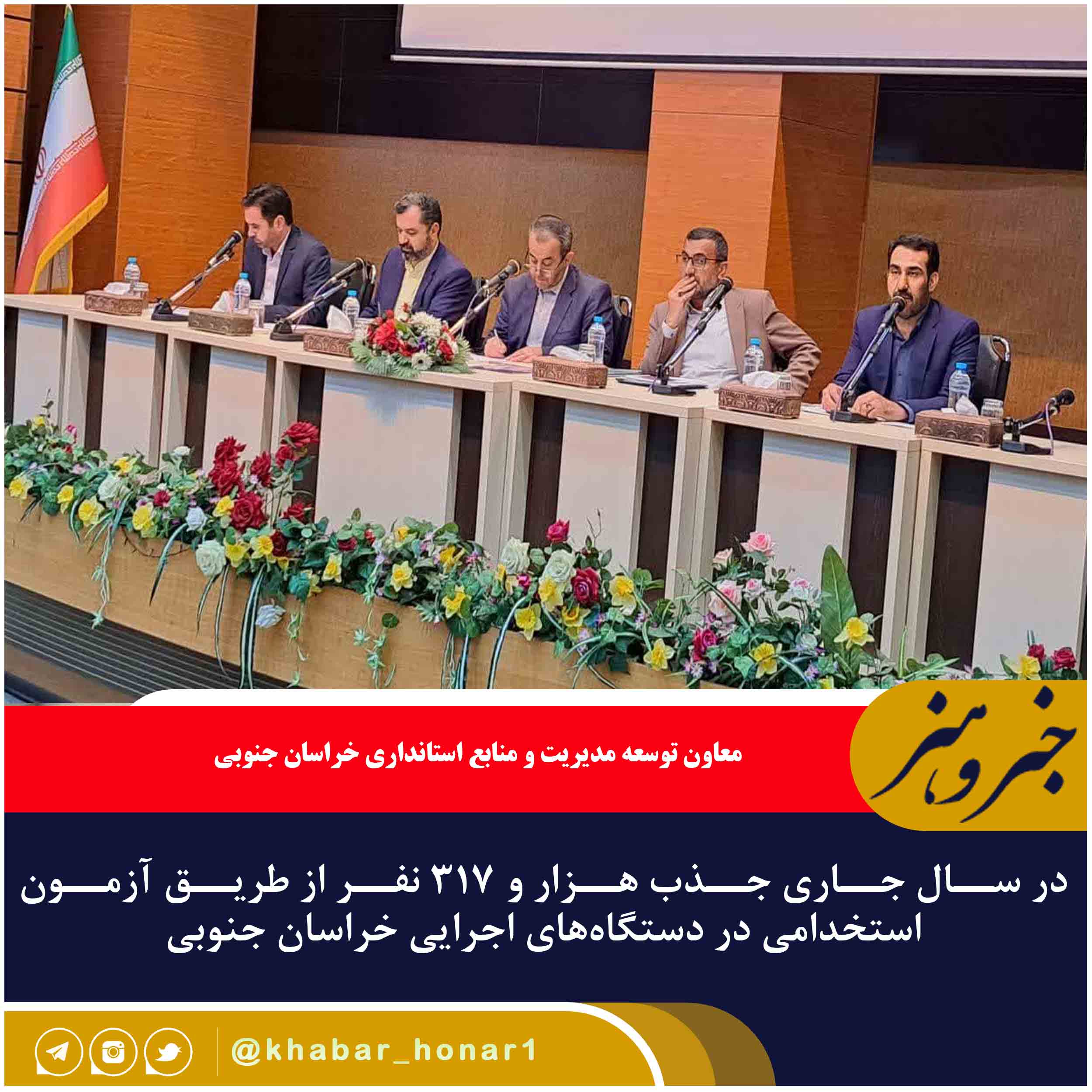 معاون توسعه مدیریت و منابع استانداری خراسان جنوبی گفت: از ابتدای دولت سیزدهم تاکنون ۱۵ آزمون استخدامی برگزار شده و در سال جاری نیز مجوز جذب هزار و ۳۱۷ نفر از طریق آزمون استخدامی در دستگاههای اجرایی خراسان جنوبی اخذ شده است.