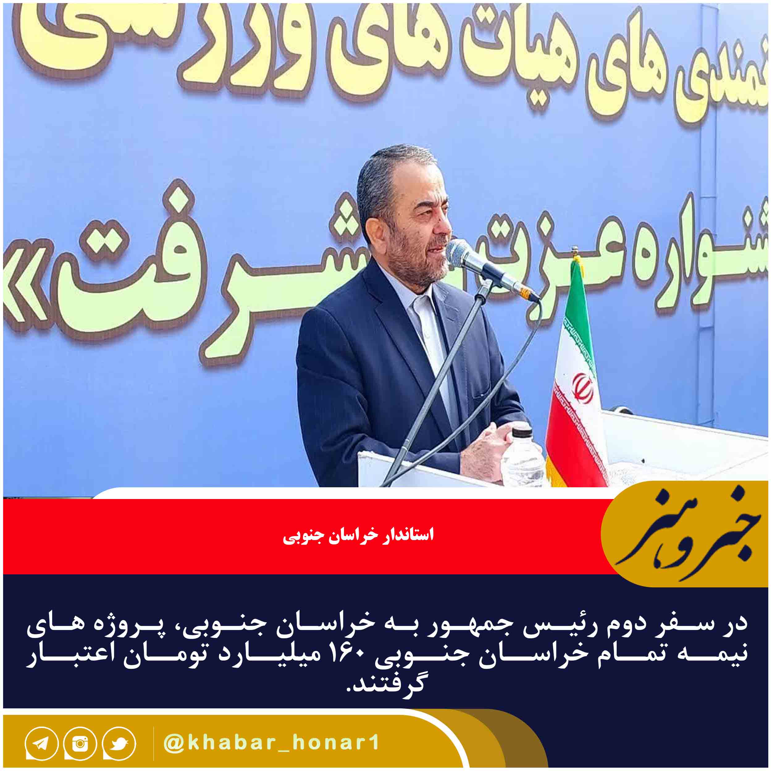 ?استاندار خراسان جنوبی از افتتاح ۳۰ پروژه ورزشی در استان خبر داد و گفت: در سفر دوم ریاستجمهوری ۱۶۰ میلیارد تومان برای تکمیل پروژه های نیمه تمام و جدید پیش بینی کردیم.