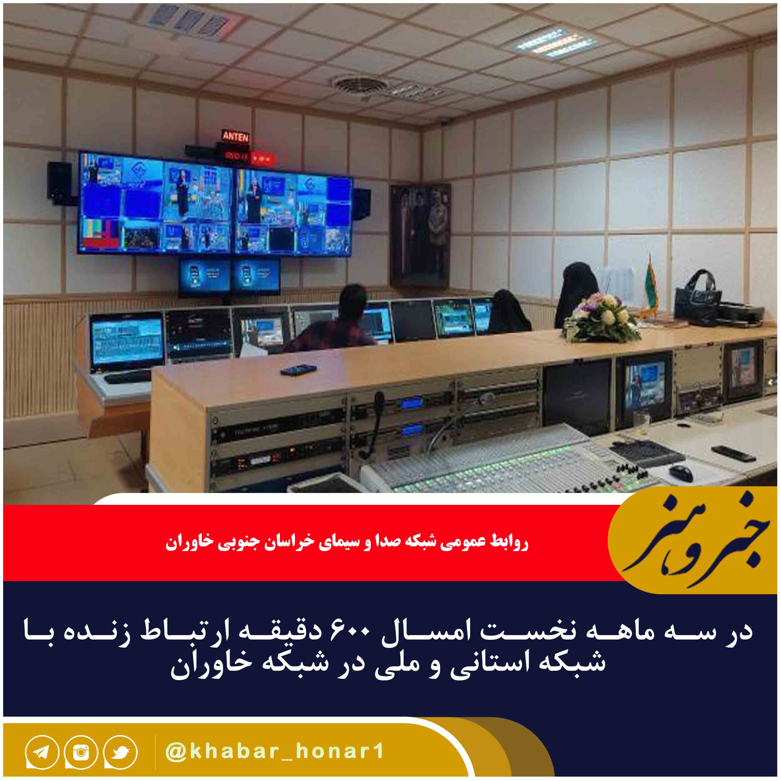 پخش سیمای خاوران در سه ماهه نخست امسال با بیش از ۶۰۰ دقیقه ارتباط با شبکه استانی و ملی در تلاش است ،تا مخاطبان همیشه همراه خود را با آداب و رسوم مردم سایر نقاط استان در مناسبت های مختلف بیشتر آشنا کند.
