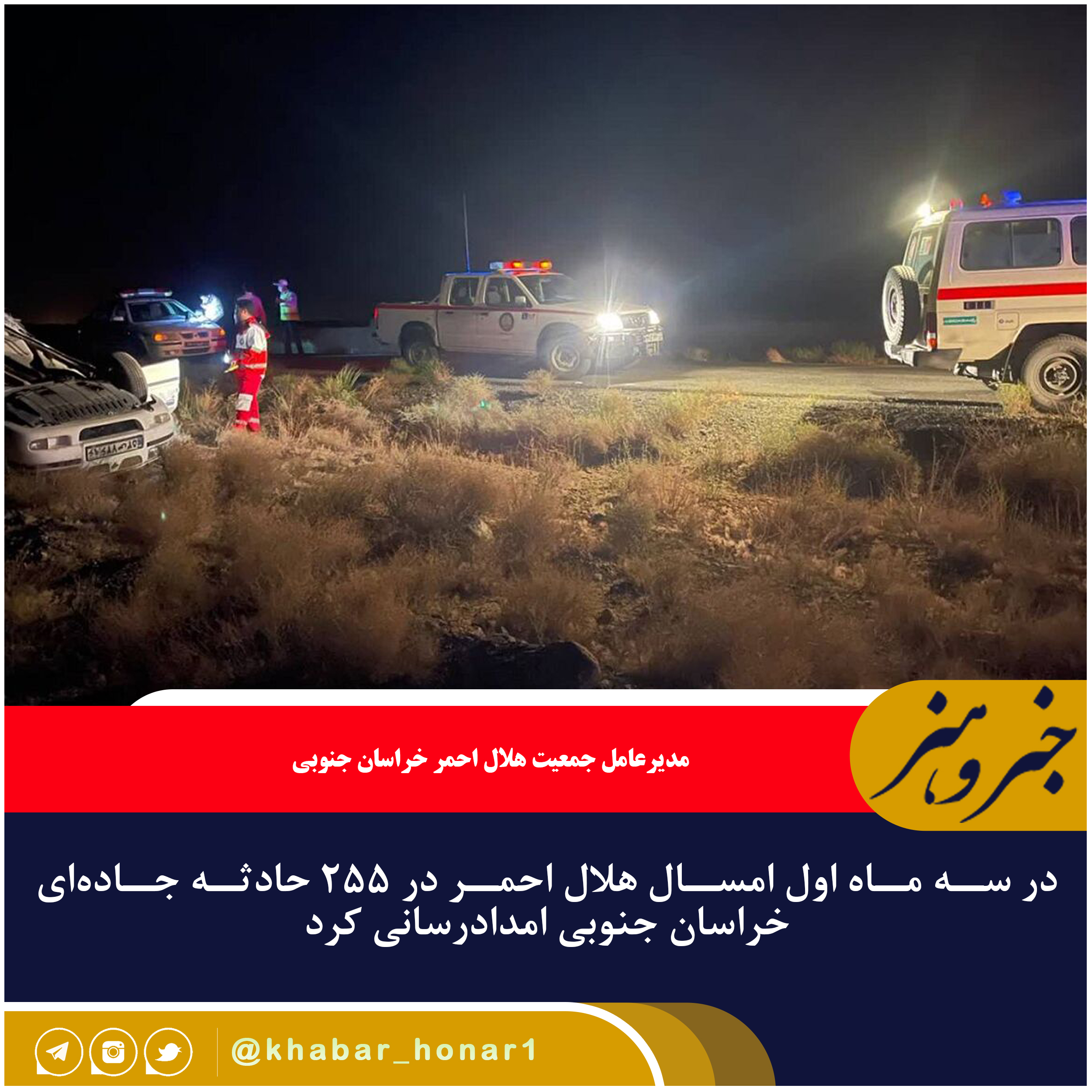 مدیرعامل جمعیت هلال احمر خراسان جنوبی گفت: امدادگران این جمعیت در سه ماه اول امسال به ۲۵۵ حادثه جادهای امدادرسانی کردند که از این تعداد ۱۵۱ مورد واژگونی خودرو بوده است.