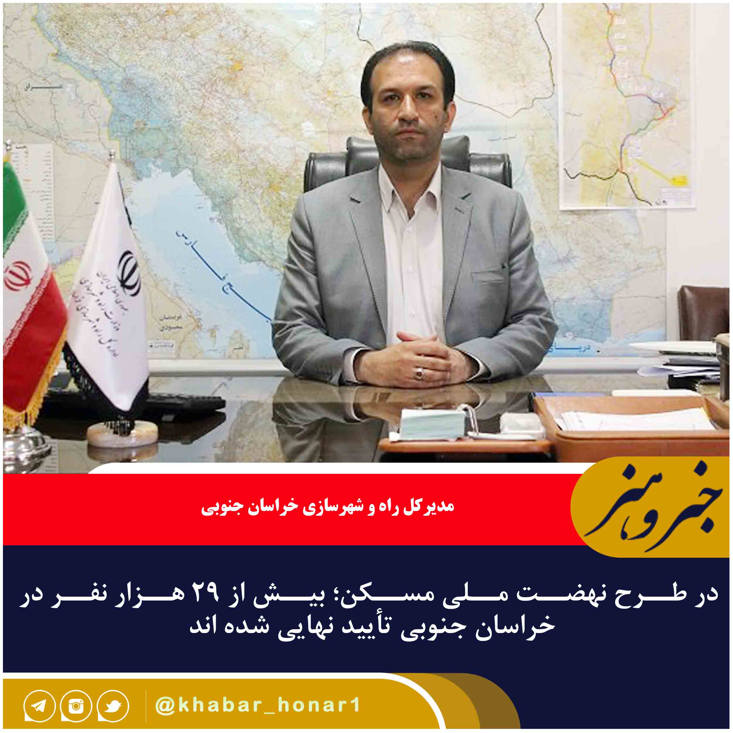 مدیرکل راه و شهرسازی خراسان جنوبی از تأیید نهایی شدن ۲۹ هزار و ۵۵۲ نفر از متقاضیان نهضت ملی مسکن در استان خبر داد.