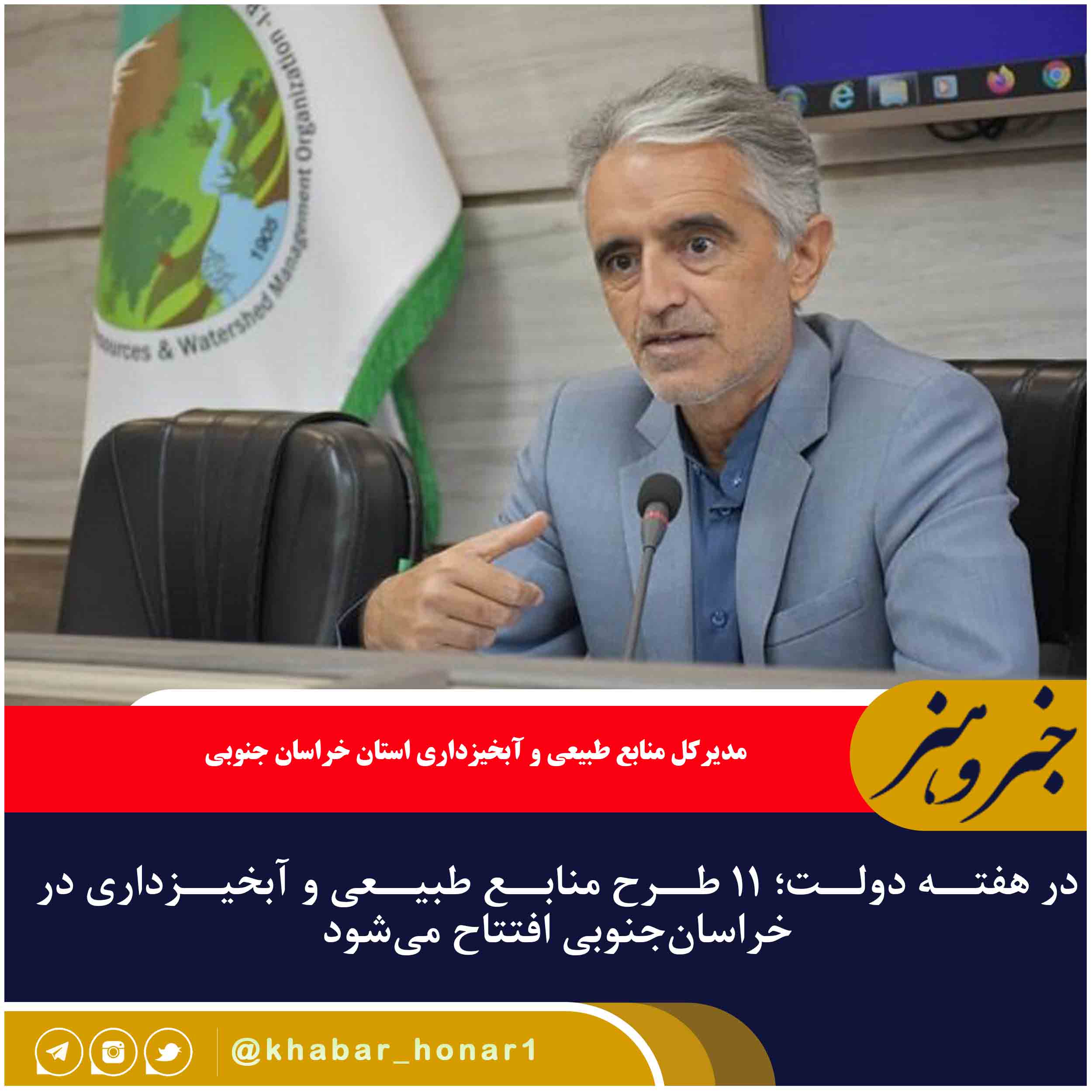 مدیرکل منابع طبیعی و آبخیزداری استان خراسان جنوبی گفت: همزمان با هفته دولت ۱۱ طرح منابع طبیعی در استان افتتاح میشود.