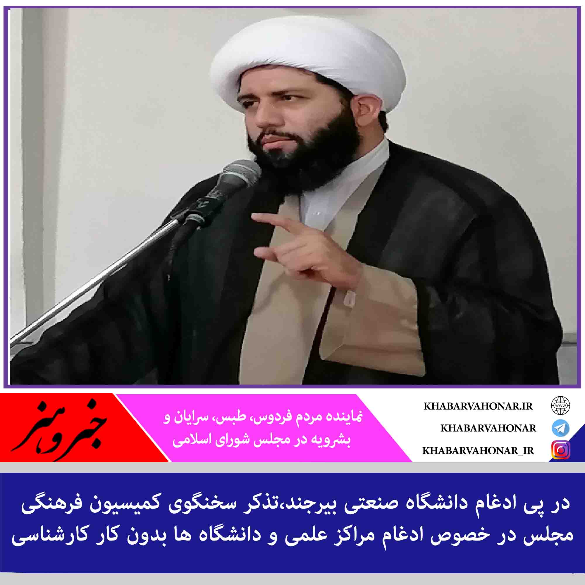 ?نماینده مردم فردوس طبس بشرویه سرایان در خصوص ادغام دانشگاه ها و مراکز علمی در صحن علنی مجلس تذکر داد.