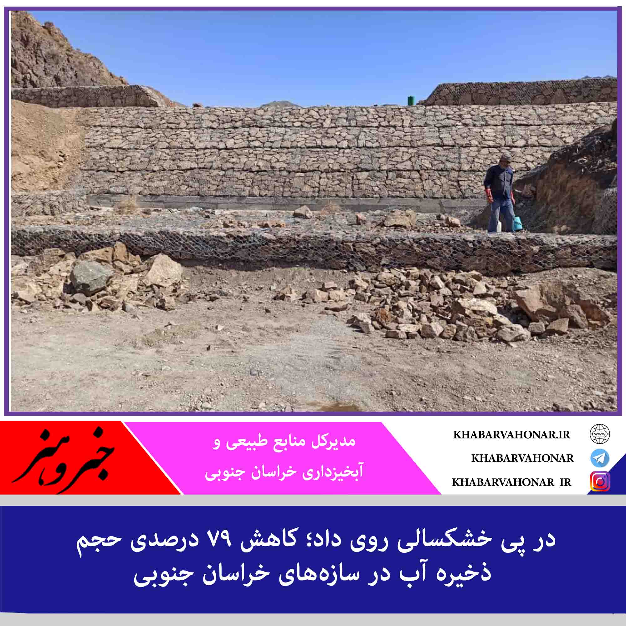مدیرکل منابع طبیعی و آبخیزداری خراسان جنوبی گفت: با توجه به کاهش بارندگیها در سال آبی – زراعی جاری، حجم ذخیره آب در سازههای آبخیزداری استان تاکنون ۷۹ درصد کاهش یافته است.