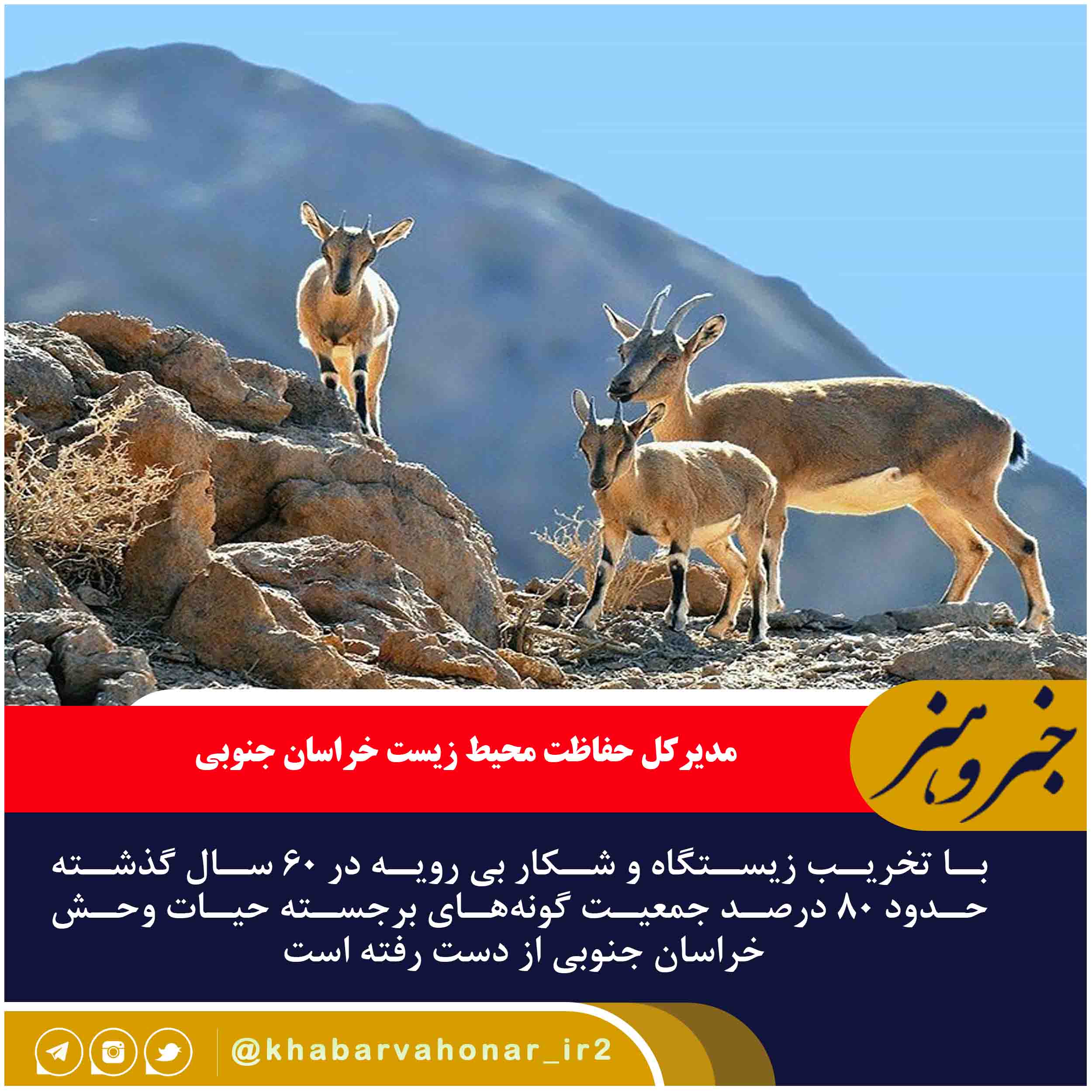 با تخریب زیستگاه و شکار بی رویه در ۶۰ سال گذشته حدود ۸۰ درصد جمعیت گونههای برجسته حیات وحش خراسان جنوبی از دست رفته است.