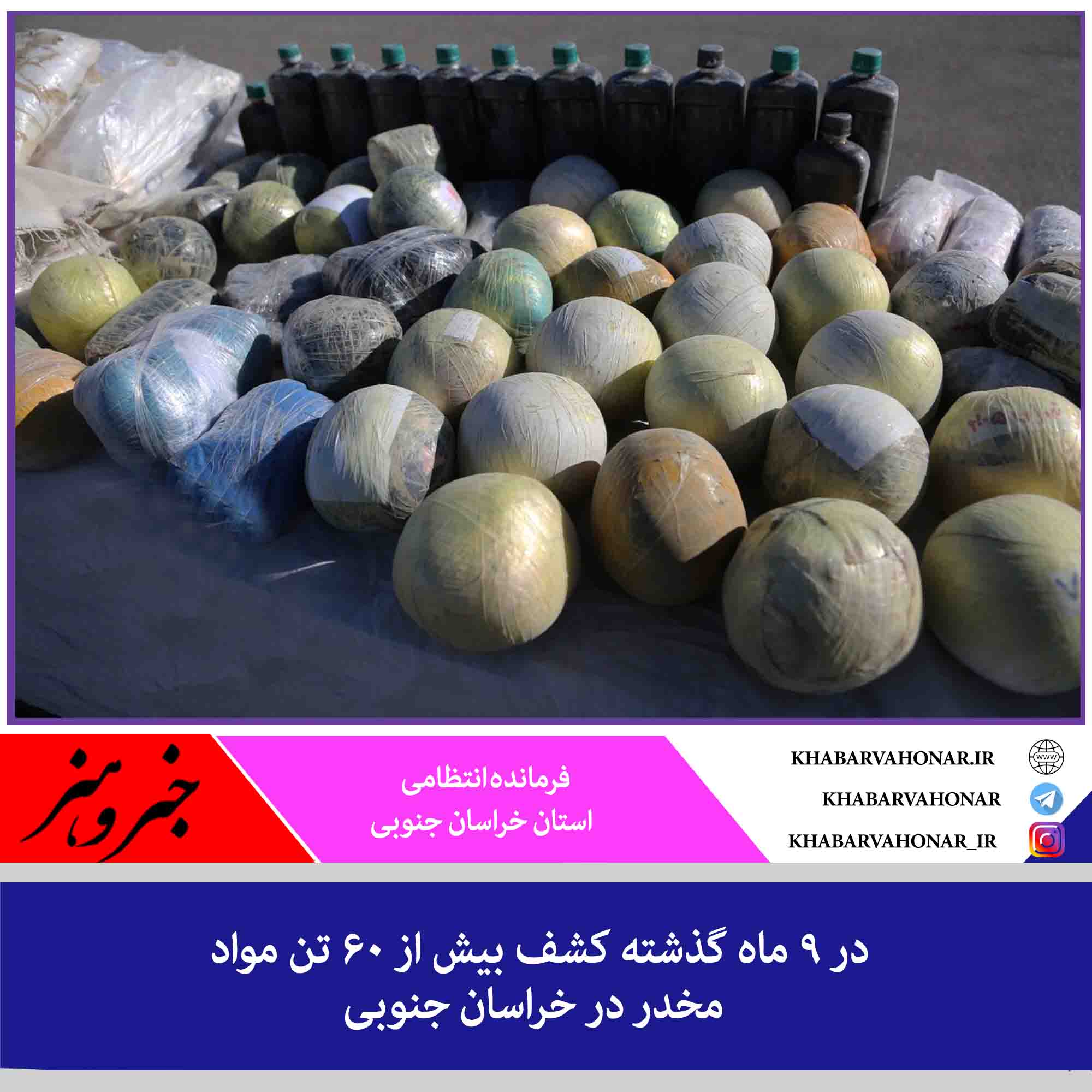 فرمانده انتظامی استان خراسان جنوبی گفت: در ۹ ماه گذشته بیش از ۶۰ تن انواع مواد مخدر در این استان کشف شده است.