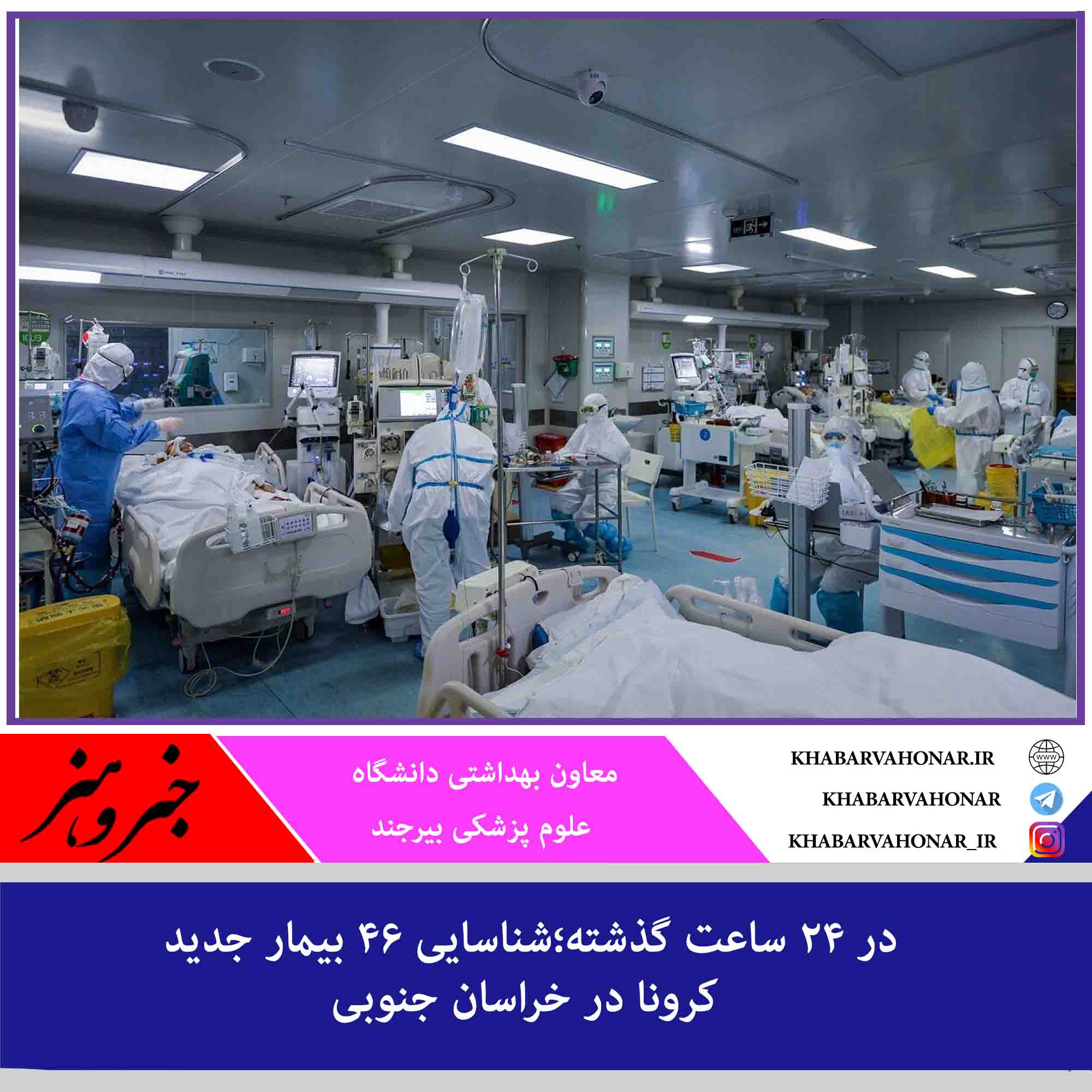 ?معاون بهداشتی دانشگاه علوم پزشکی بیرجند با بیان اینکه در شبانه روز گذشته ۱۸۱ آزمایش کرونا در استان انجام شد که ۴۶ آزمایش، مثبت قطعی اعلام شد، گفت: از این تعداد مبتلای جدید به کرونا، ۱۶ نفر در بیمارستانها بستری اند و ۳۰ نفر نیز نمونه گیری سرپایی شدند.