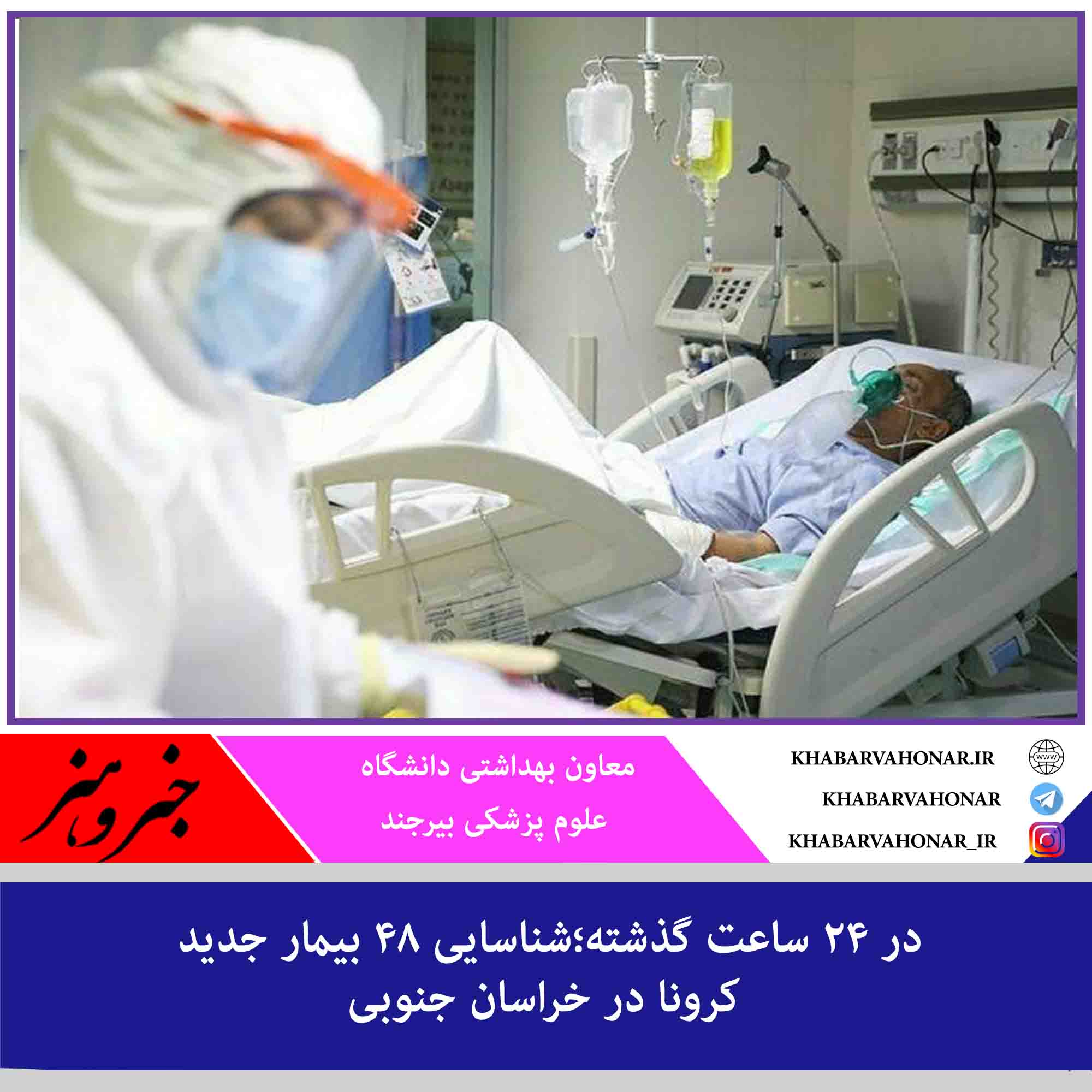 ?معاون بهداشتی دانشگاه علوم پزشکی بیرجند با بیان اینکه در شبانه روز گذشته ۱۸۹ آزمایش کرونا در استان انجام شد که ۴۸ آزمایش، مثبت قطعی اعلام شد، گفت: از این تعداد مبتلای جدید به کرونا، ۱۱ نفر در بیمارستانها بستری اند و ۳۷ نفر نیز نمونه گیری سرپایی شدند.