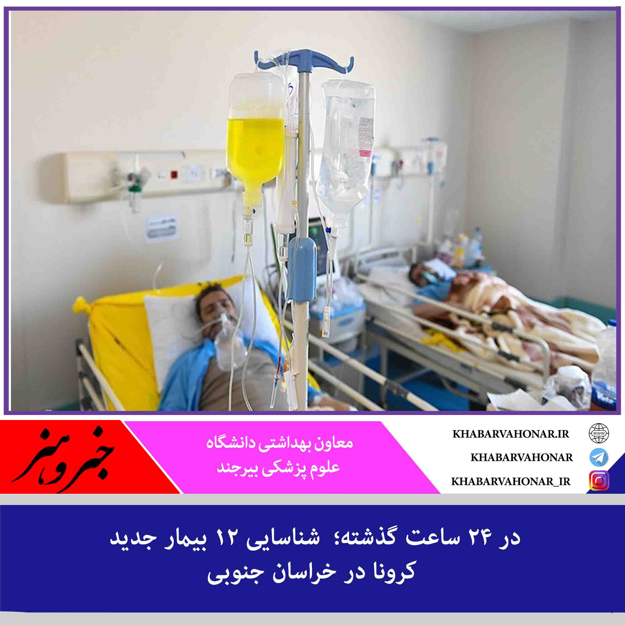 ?معاون بهداشتی دانشگاه علوم پزشکی بیرجند با بیان اینکه در شبانه روز گذشته ۸۱ آزمایش کرونا در استان انجام شد که ۱۲ آزمایش، مثبت قطعی اعلام شد، گفت: از این تعداد مبتلای جدید به کرونا، ۲ نفر در بیمارستانها بستری اند و ۱۰ نفر نیز نمونه گیری سرپایی شدند.