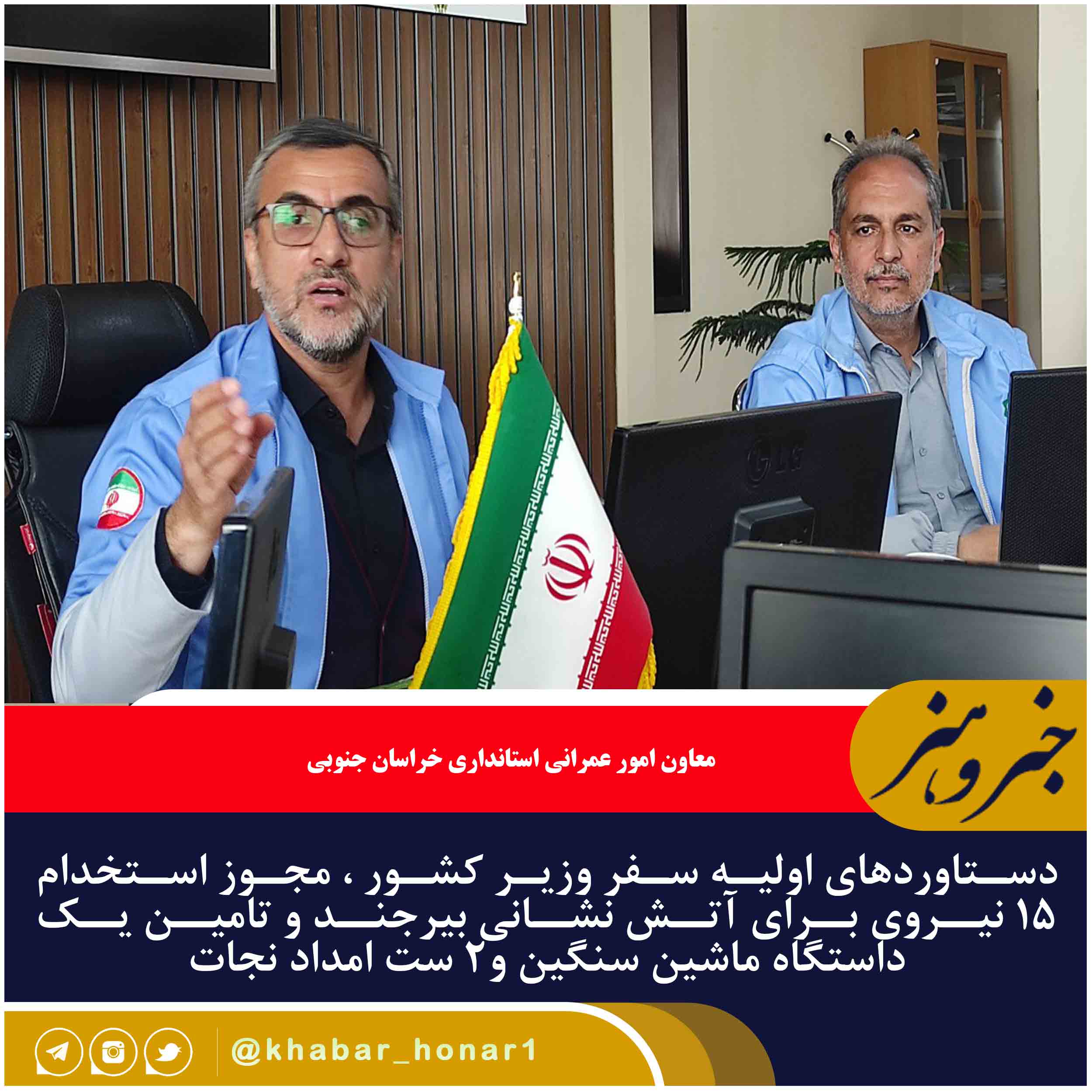 معاون امور عمرانی استانداری خراسان جنوبی، در نشست خبری پیرامون حریق در منطقه ویژه اقتصادی بیرجند، با اشاره به دستاوردهای سفر وزیر کشور به استان، بیان کرد: «اختصاص یک دستگاه ماشین آتشنشانی سنگین به بیرجند و ۲ ست امداد و نجات به استان از جمله دستاوردهای سفر وزیر کشور است».