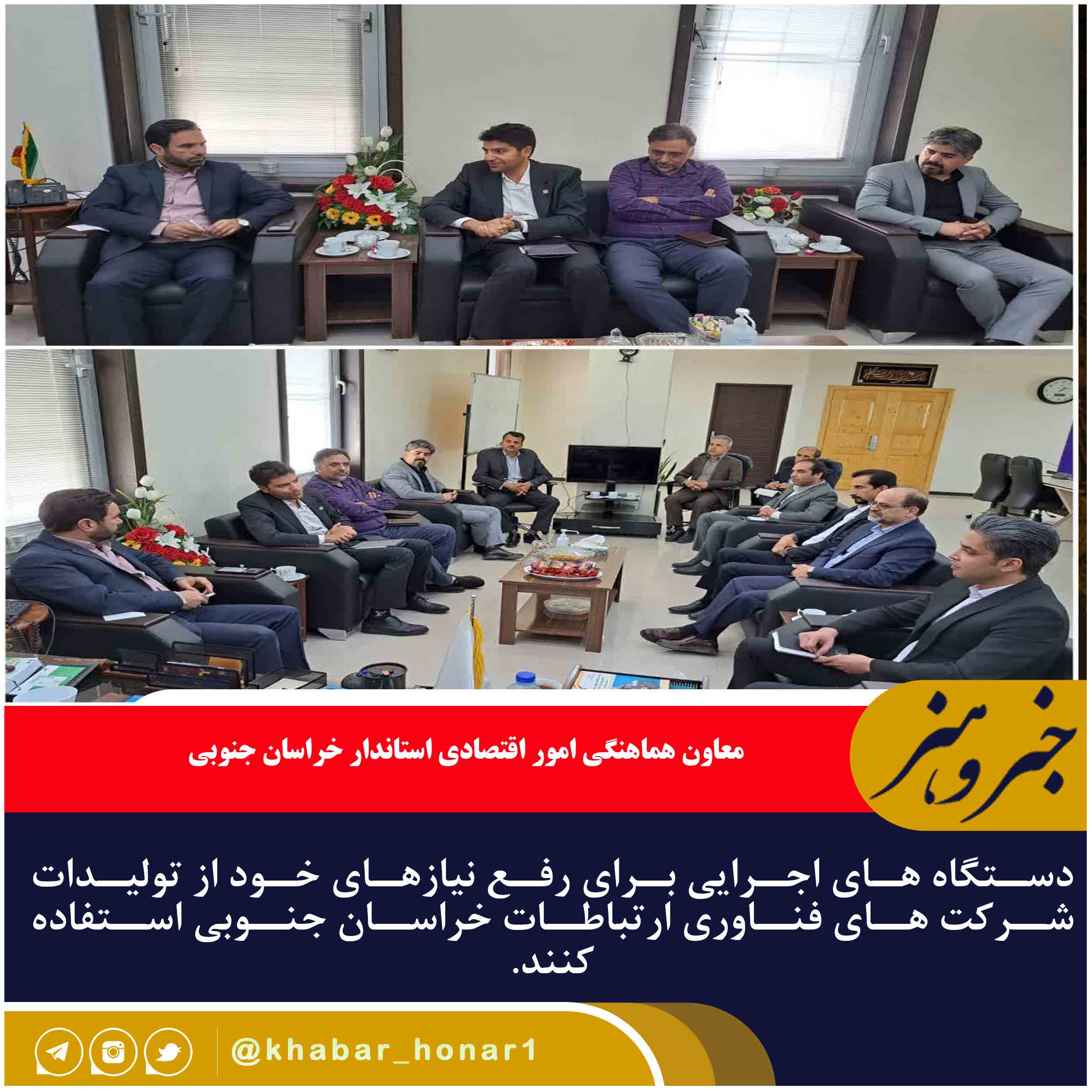 ?معاون هماهنگی امور اقتصادی استاندار خراسان جنوبی تأکید کرد: دستگاه های اجرایی برای رفع نیازهای خود از تولیدات شرکت های فناوری ارتباطات خراسان جنوبی استفاده کنند.