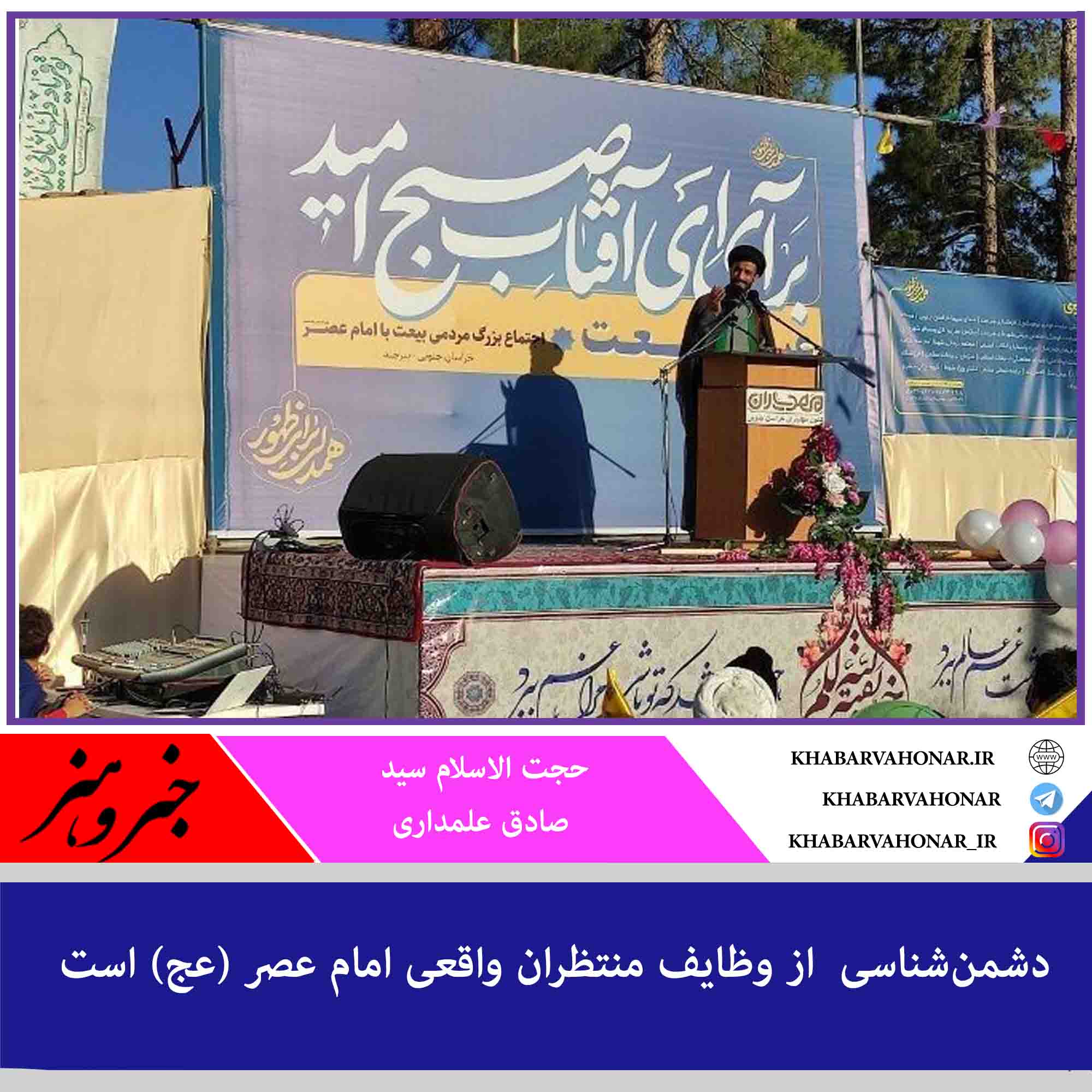 حجت الاسلام علمداری دشمنشناسی را از وظایف منتظران واقعی امام عصر برشمرد و ادامه داد: امروز کشورهای زیادی در منطقه و جهان با فرهنگ اهل بیت بهواسطه انقلاب اسلامی ما آشنا میشوند و امام زمان (عج) امروز از نقاط مختلف جهان یارگیری میکند.