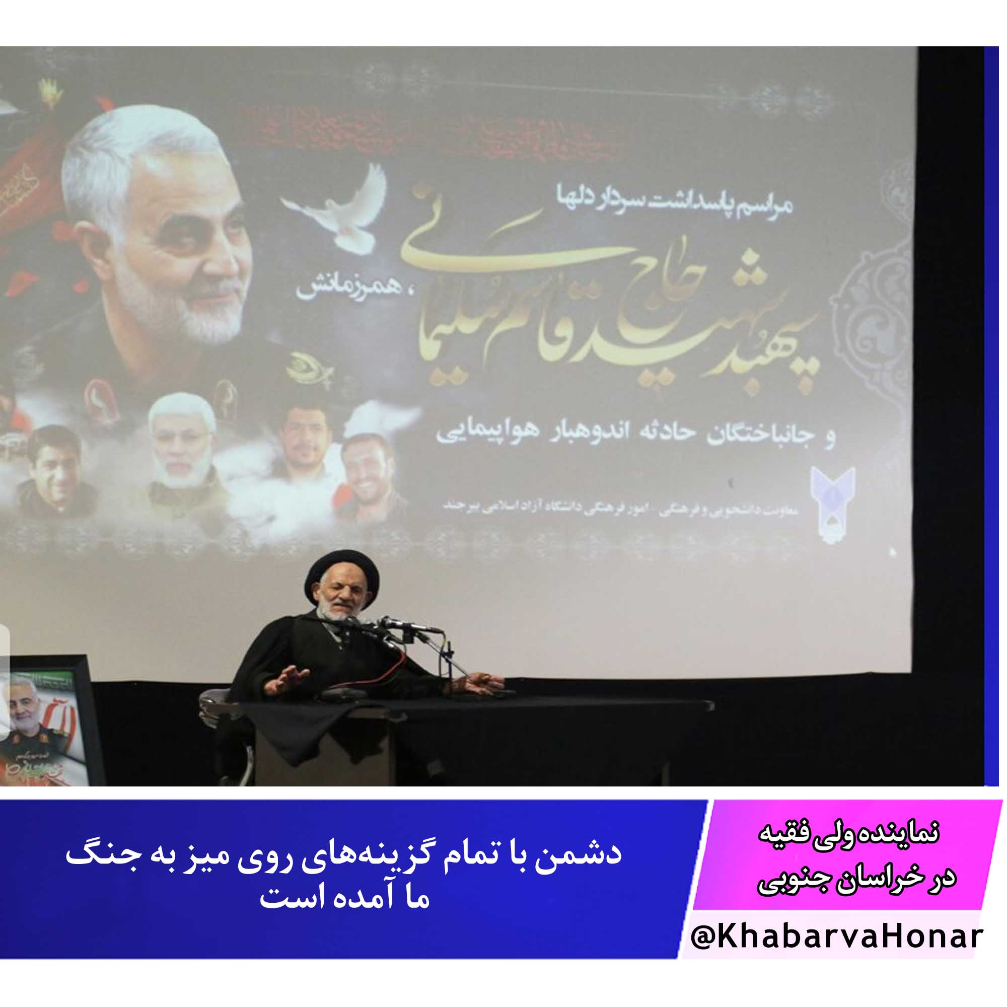 نماینده ولی فقیه در خراسان جنوبی اظهار داشت: دشمن با تمام گزینههای روی میز به جنگ ما آمده است و باید همه ما پادگانی باشیم.